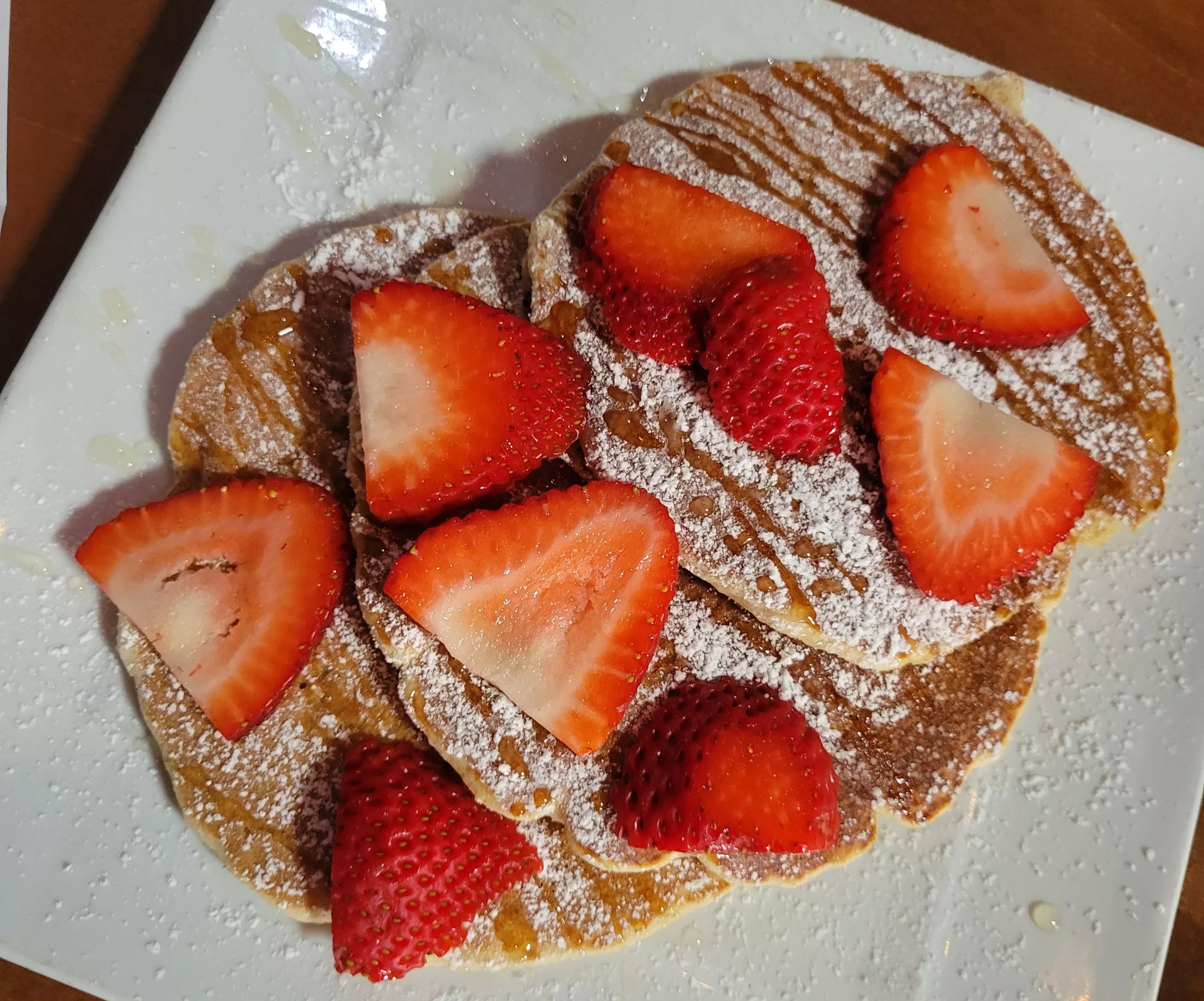The brunch food was also perfect for all ages, and my kid devoured a plate of strawberry-topped pancakes and a bowl of guacamole with chips. I had three tasty tacos: the mushroom, bacon-jalapeño and carnitas. Coffee was served, along with a Mexican bottled Coke for my son and a Monstera Lemonade cocktail for me, a refreshing tipple made with vodka, tequila, pomegranate lemonade and a soda float.