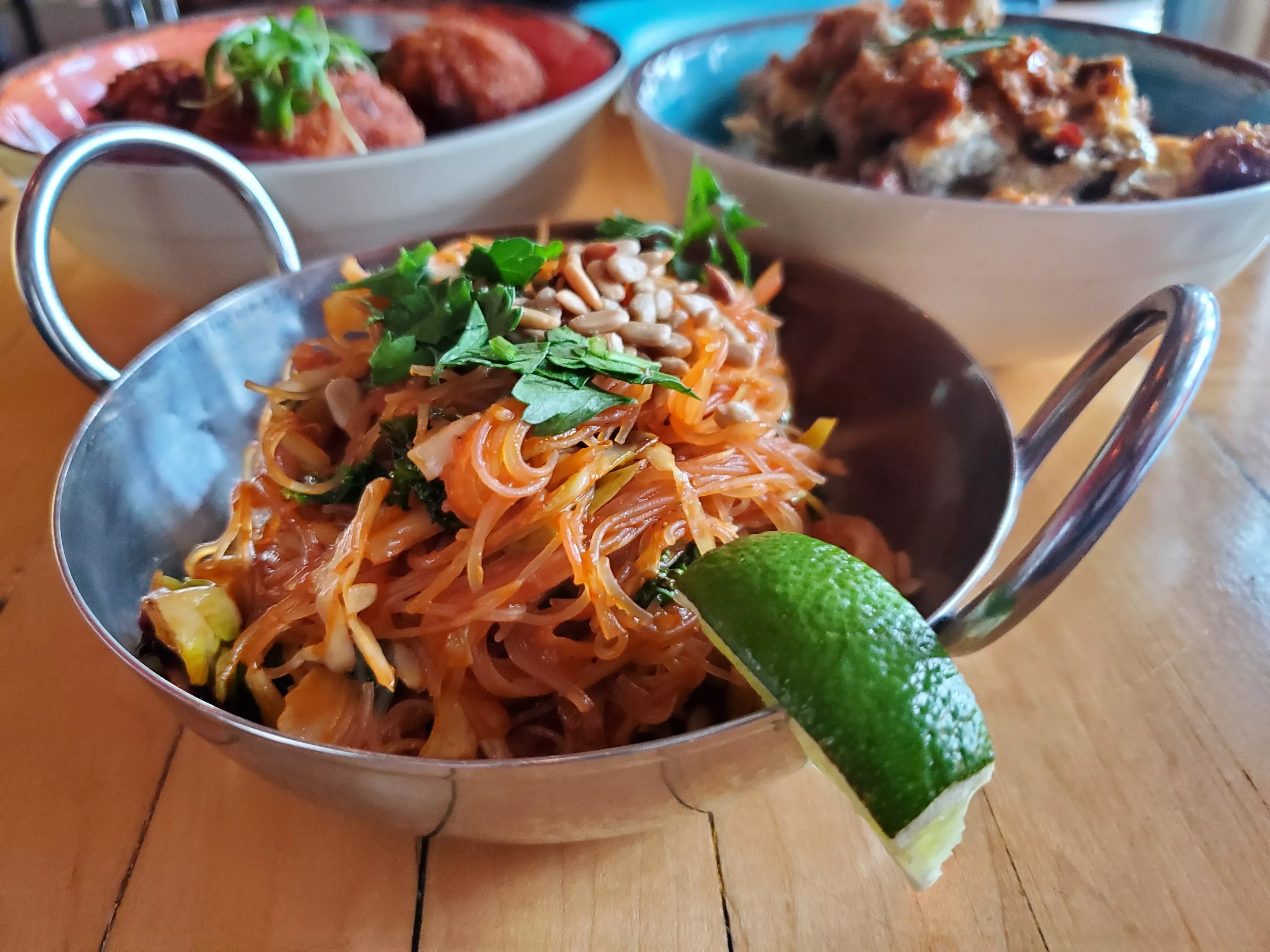 The shrimp and glass noodles at Super Mega Bien packs some heat.