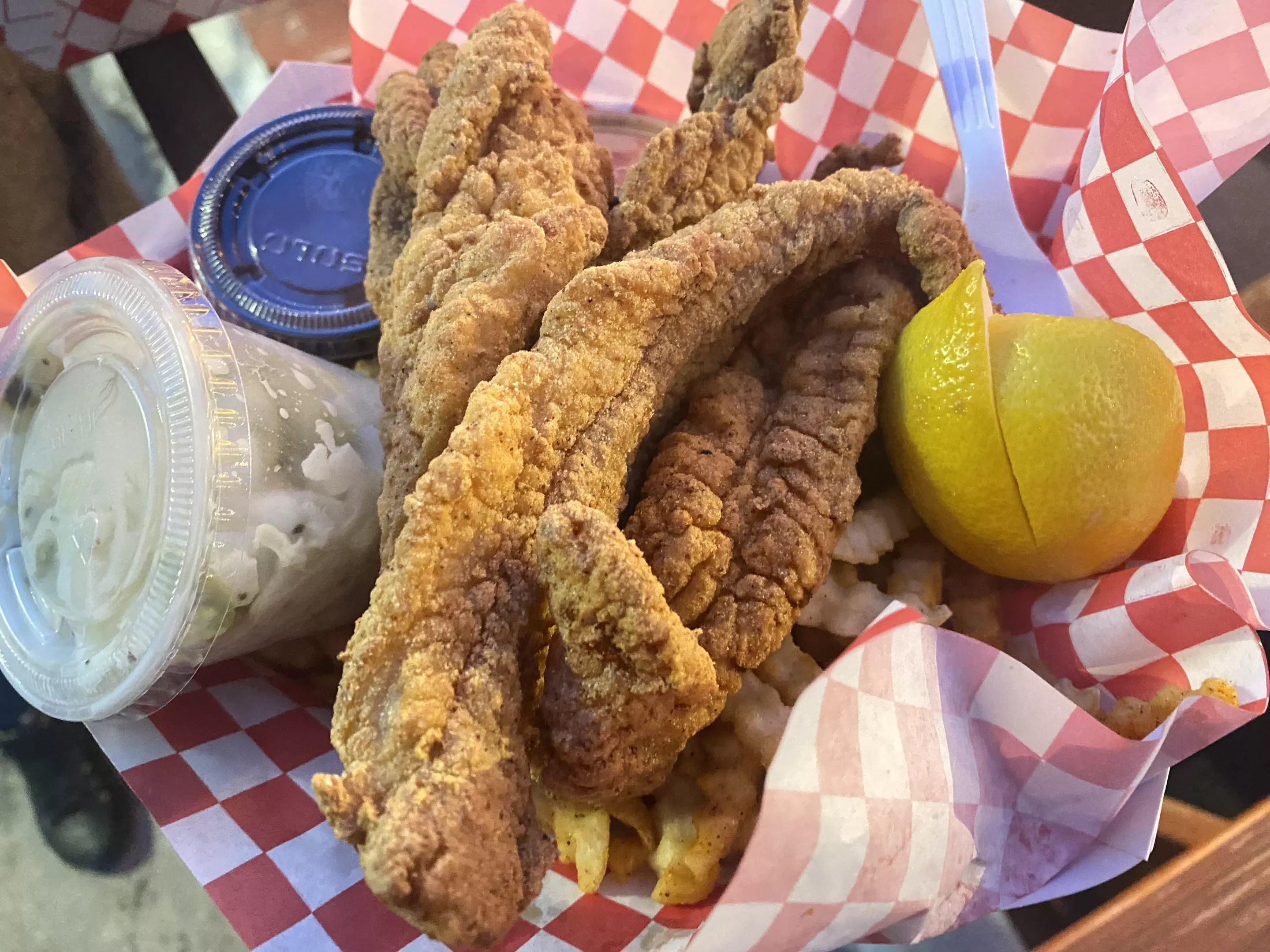 Crispy fried Mississippi catfish from Deja Roux.