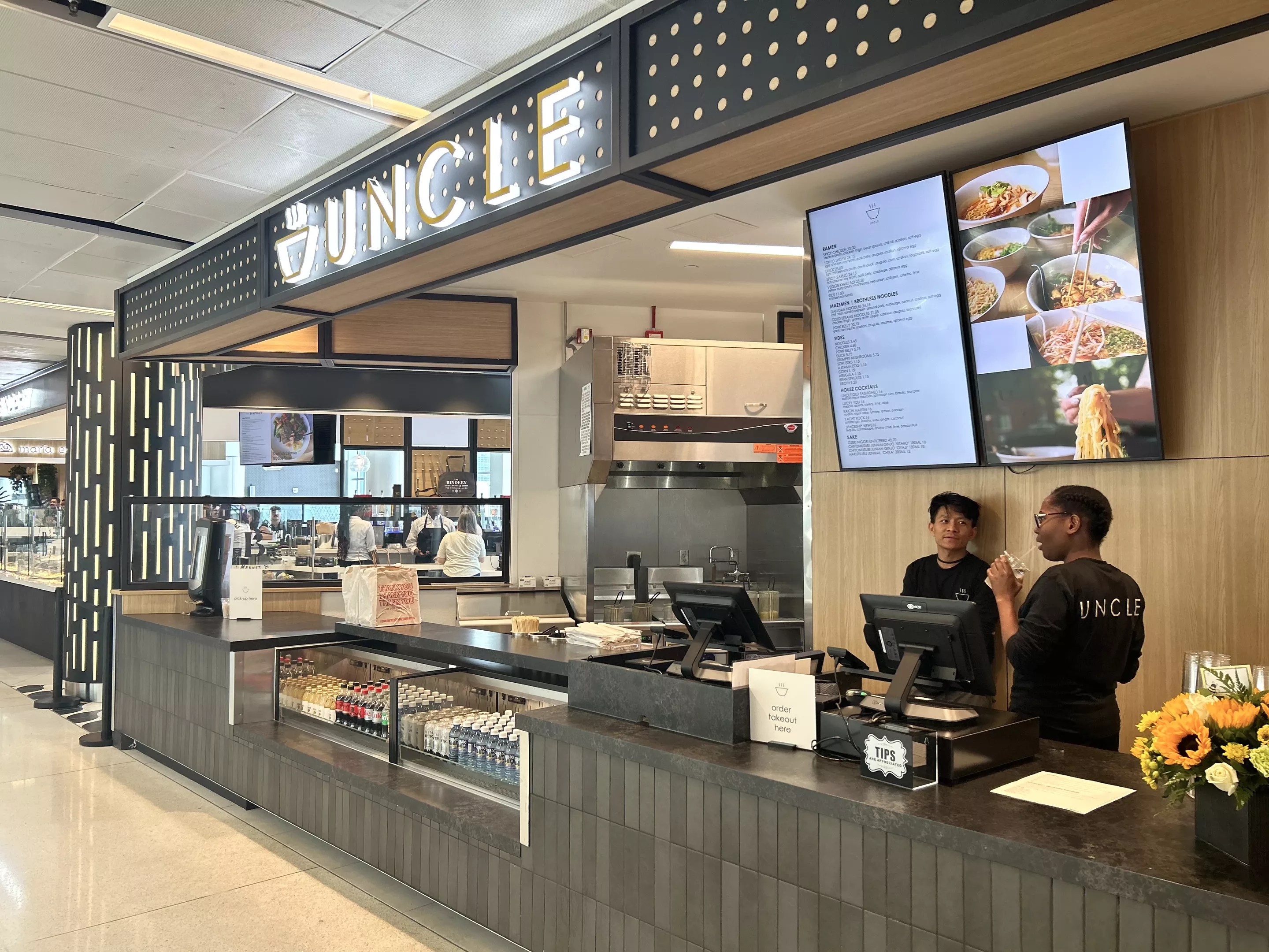 Because of limited space and ingredient suppliers, some of Uncle’s original recipes have been tweaked for the airport. But according to loyal fans who have dined in Concourse A, the dishes taste the same – a win in Lee’s book. Uncle regulars will recognize ramen options topped with duck confit or spicy chicken, as well as its vegetarian khao soi and brothless bowls like dan dan noodles. Grab-and-go items are also in the works (as is a new collaborative restaurant concept not far from the airport).