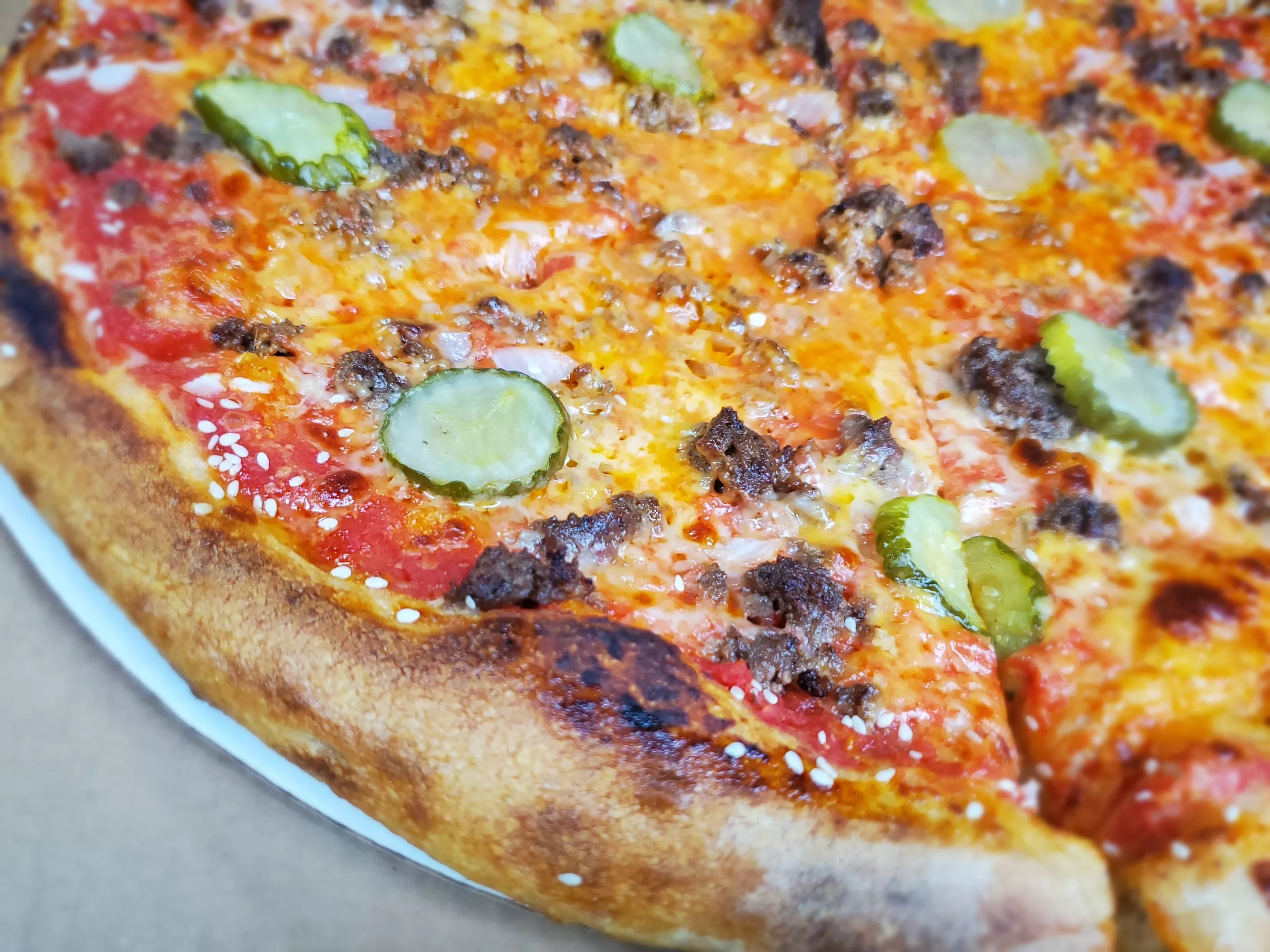 The special cheeseburger pizza from Good Bread is indeed Good Pizza.