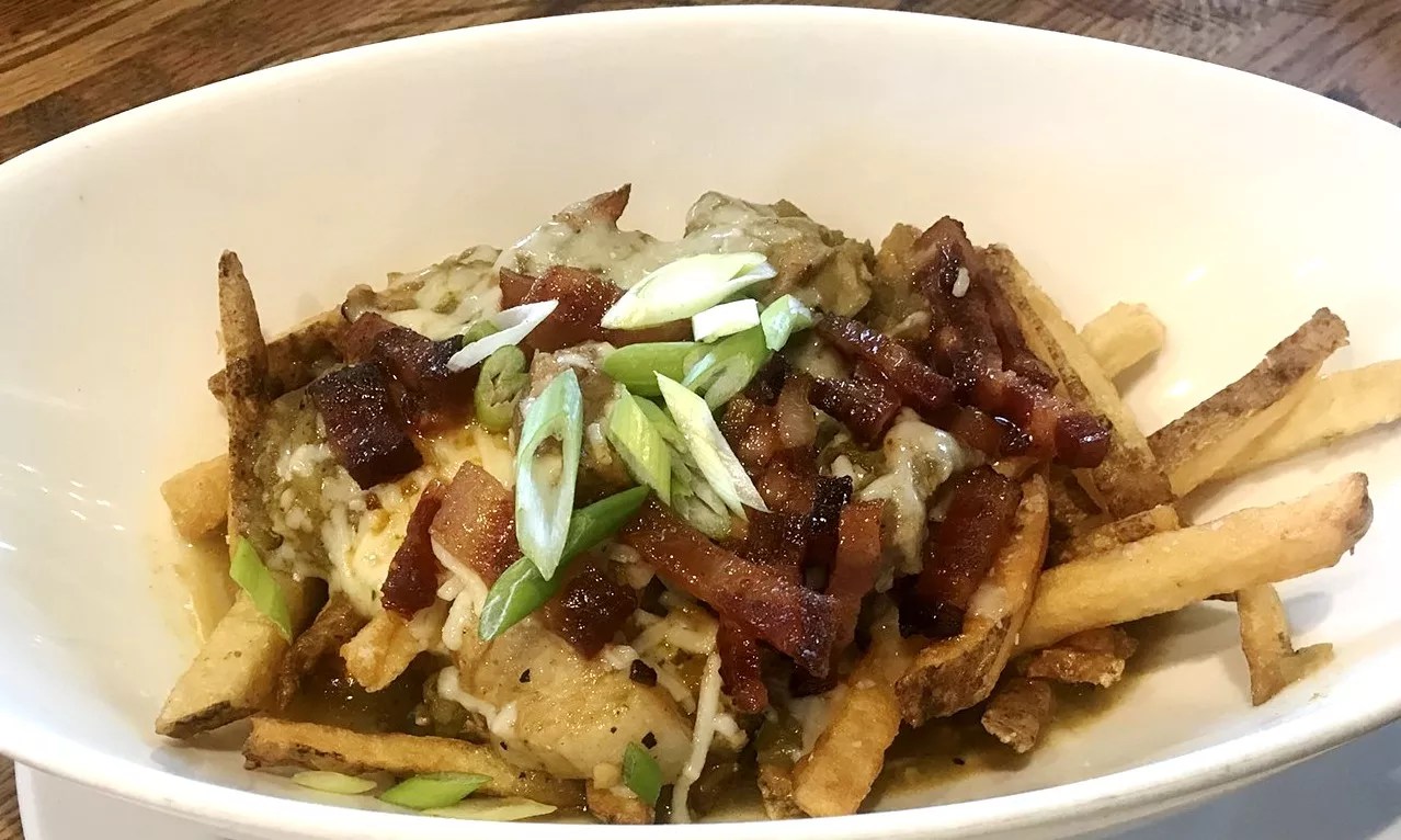 The house green chile is used again on loaded fries, which should be number one on your brunch list if you want to add more green chile to your diet. In addition to the spicy sauce, the skinny fries are topped with aged cheddar and pieces of thick-cut bacon. It’s comfort food at its best, and the fries are sturdy enough to stand up to the hearty green chile.