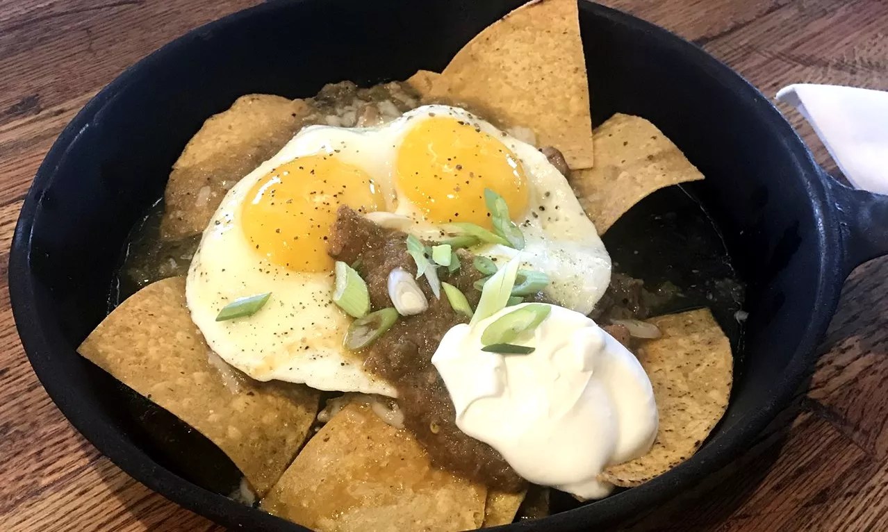 The house green chile is used again on loaded fries, which should be number one on your brunch list if you want to add more green chile to your diet. In addition to the spicy sauce, the skinny fries are topped with aged cheddar and pieces of thick-cut bacon. It’s comfort food at its best, and the fries are sturdy enough to stand up to the hearty green chile.