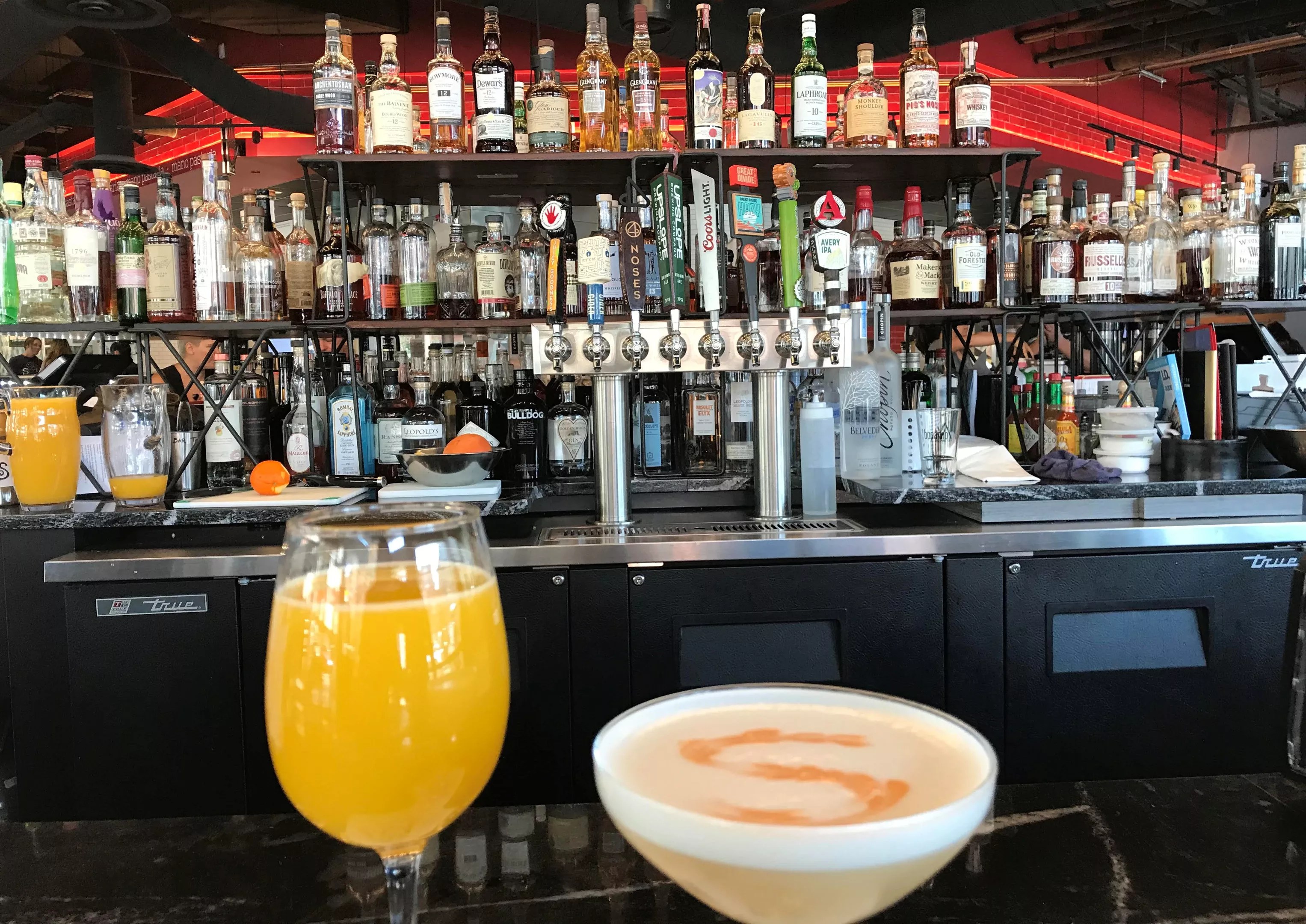 Brunch is offered until 2 p.m., and you can try a dangerous amount of food in that time. Since the genius behind this sprawling market, Frank Bonanno, runs all fifteen food and booze counters, you’re free to carry your brunch orders and adult beverages anywhere within the space or onto the patio facing Wazee Street.