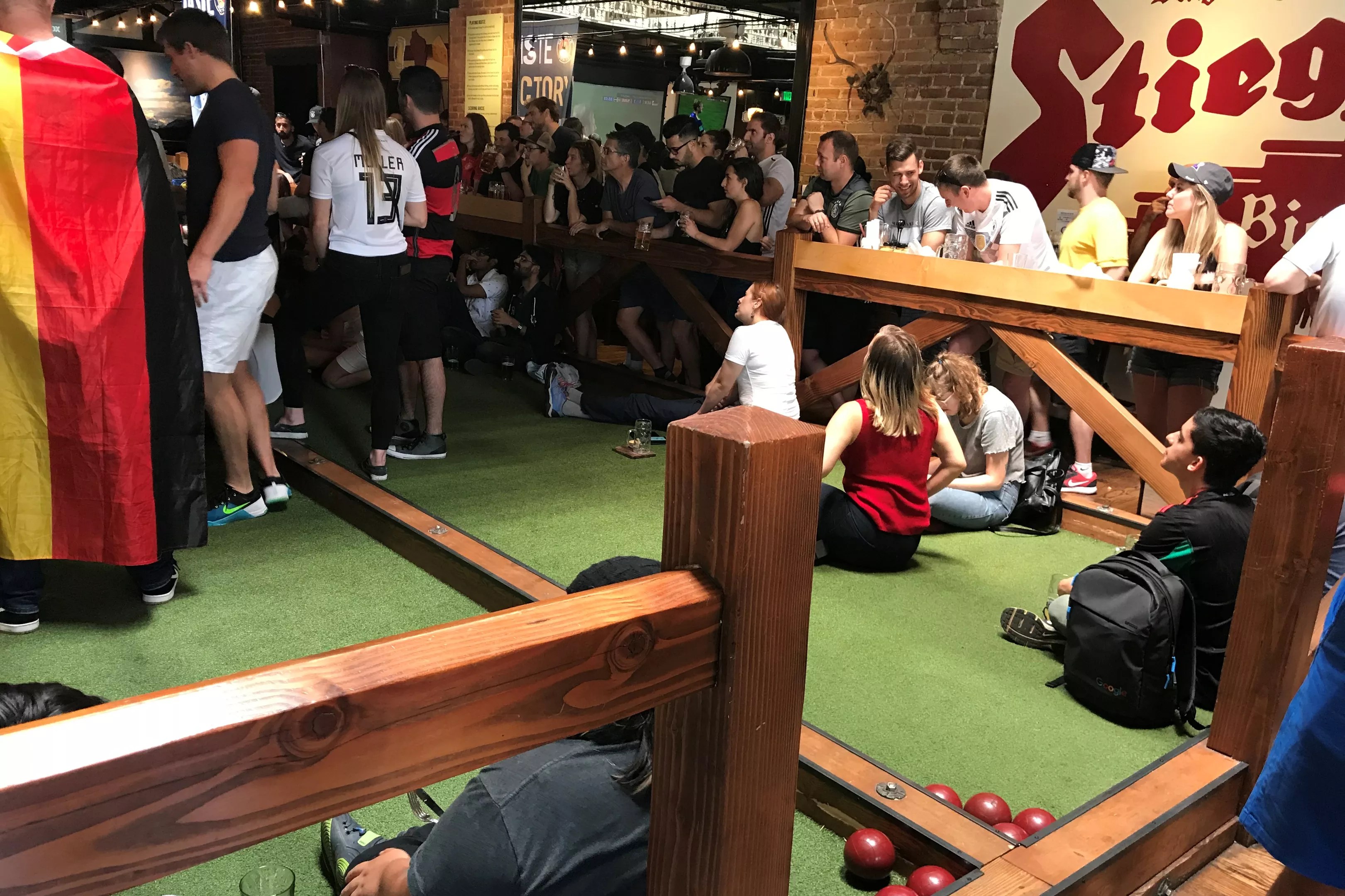 After brunch, you can burn off some of your schnitzel and spÁ¤tzle with a round or two of bocce. There are three courts situated in the middle of the restaurant that can be rented by the hour. “The fact that we can mix bocce in with brunch is pretty cool,” says general manager Frank Peredia.