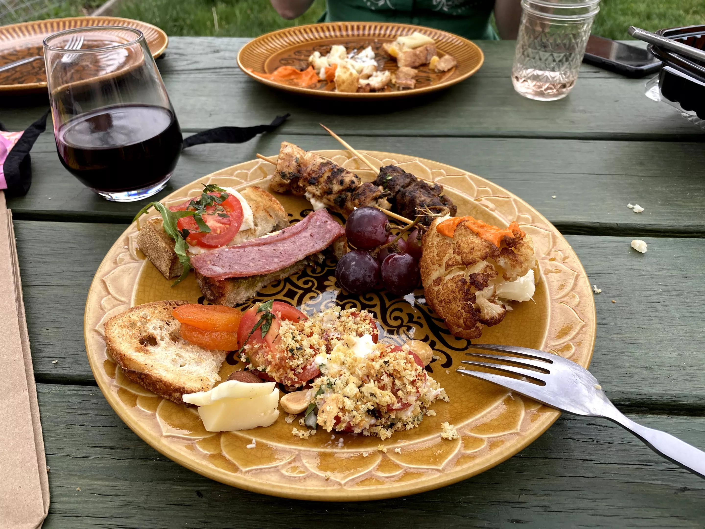 The tomatoes and mozzarella – specifically, stracciatella (fresh mozz mixed with cream) – was creamier and wetter than your average fior di latte style. Meanwhile, the skewers arrived a little more on the dry end, but were much brightened by the accompanying tzatziki-like sauce. We waited a bit too long to unveil our crispy cauliflower (which had become more soggy than crispy in transit), but were so mesmerized by the sweet-yet-acidic sultana raisin and caper romesco that we didn’t miss the crunch. If you order, a better takeout option (unless you live within a block or two of the cafe) would be Postino’s divine meatballs and goat cheese, which I remember fondly from past visits.