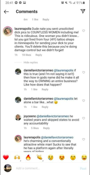 Szklarski’s apology only inspired more backlash, however. Lauren Lexvold, another former client, posted a comment on the bar’s page debunking Szklarski’s defense and suggesting that Szklarski was downplaying repetitive behavior to deflect from genuine accountability: “You’ll delete this because you’re doing damage control, but we didn’t forget!”
