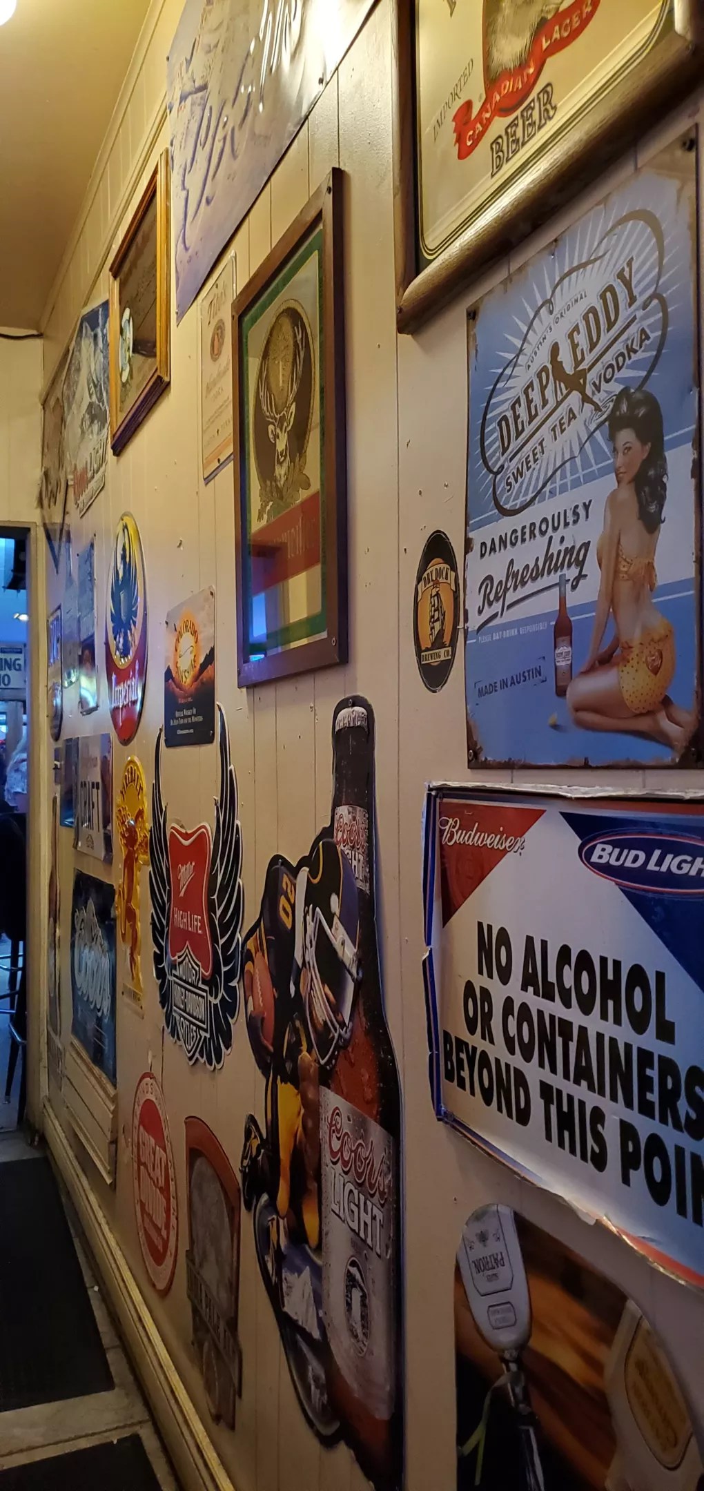 Beer signs abound on all the walls at the Piper Inn.