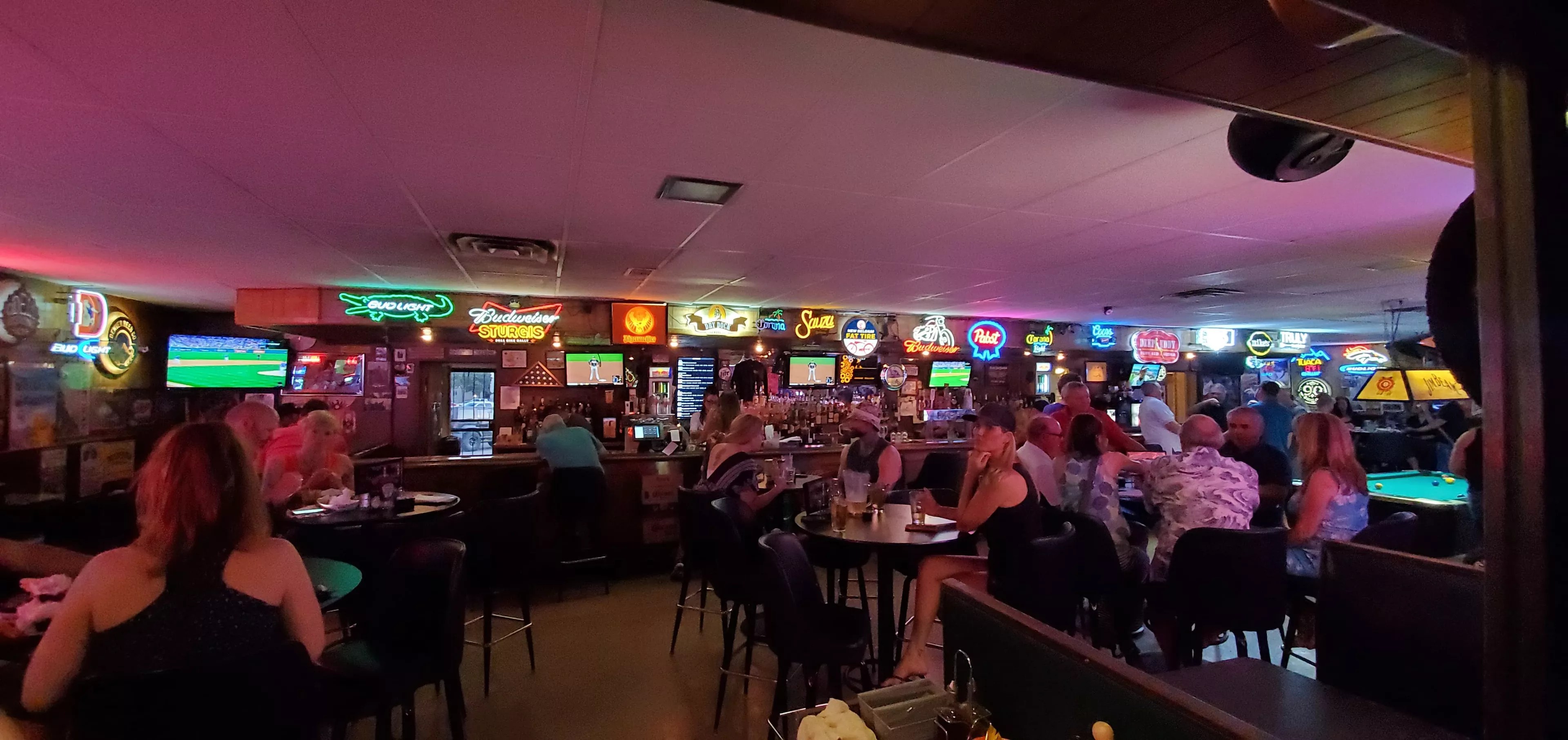 While the two covered patios are perfect for warm, breezy days, the main room inside is always packed. There are two pool tables and a TouchTunes jukebox vacillating between expected AC/DC and Journey numbers and ’90s hip-hop and country. Neon signs and metal beer ads crowd the walls, and the place feels busy and bustling but not claustrophobic. The patios have heat lamps and exterior covers, providing overflow space even during colder months.
