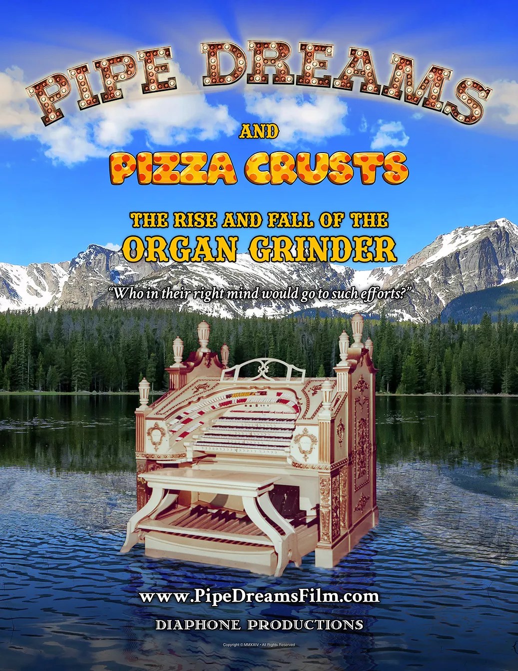 Poster for the Organ Grinder documentary with Rocky Mountain National Park in the background.