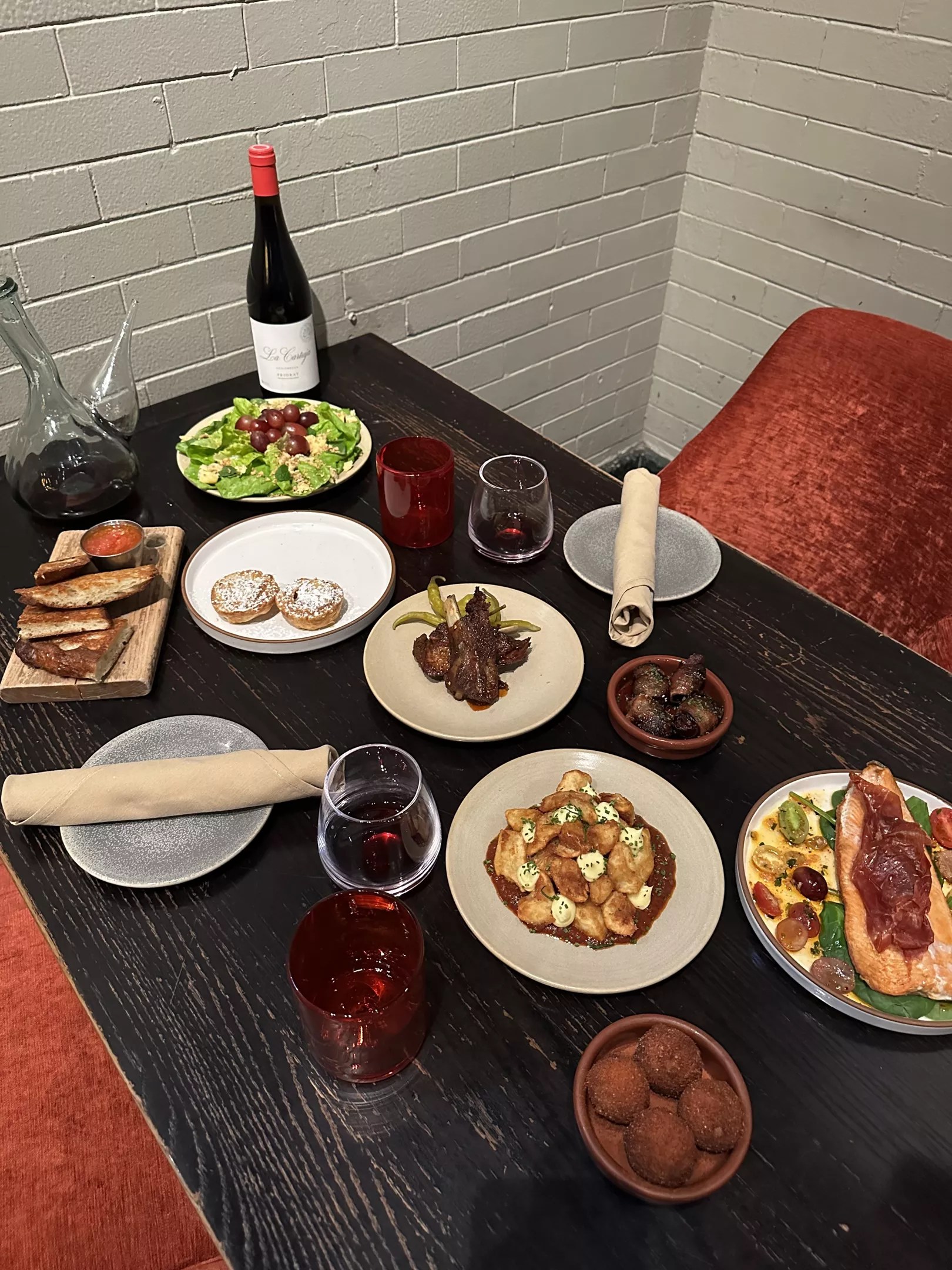 Ultreia’s Chef’s Feast includes three rounds of dishes for $45 per person. First up is a spread of tapas. “Croquettes, pan con tomate, dates, a salad,” Brantz says. “Then the next round is the bulkier dishes, so there’s half a trout, Moorish-spiced ribs, patatas bravas. And the third round comes with pastel de nata.” Individually, the items would cost $120 total.
