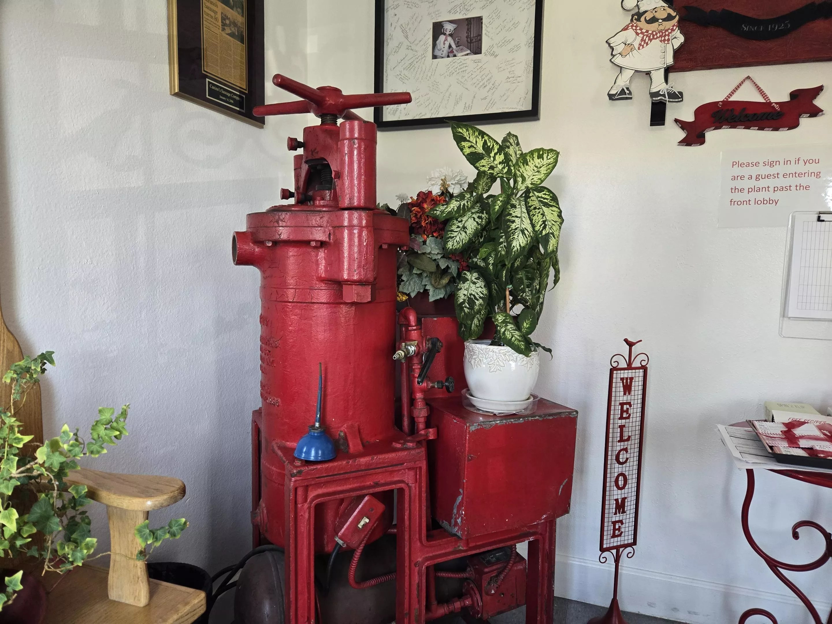 Some of the old sausage-making machinery is still on display at the Canino’s plant.