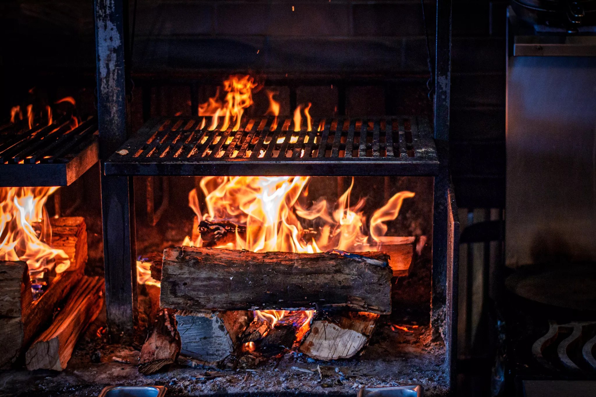 The wood-fired grill at Fish N Beer is on full display in the cozy dining room.
