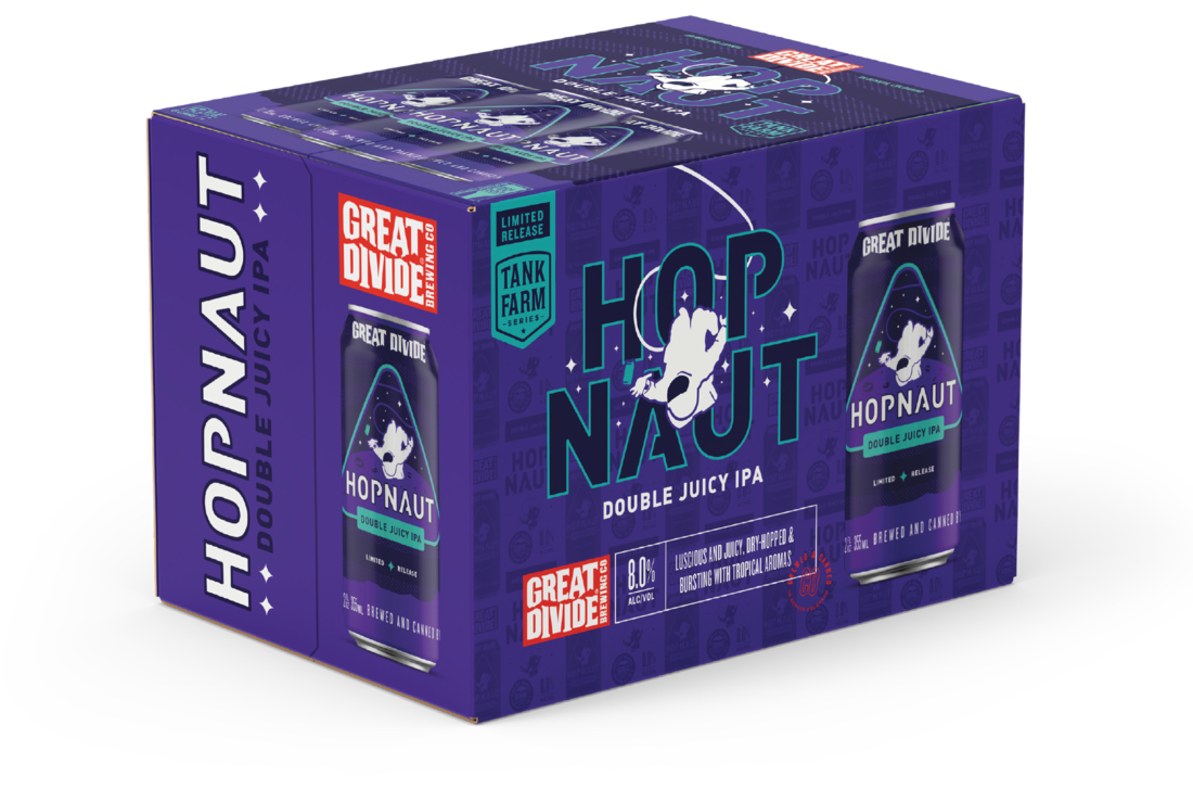 It’s always a good day when Great Divide Brewing pumps up the hops, and the brewery will release a brand-new beer, Hopnaut Double Juicy IPA, in both of its taprooms today on draft and in six-packs. The 8 percent ABV beer replaces Hop Disciples in Great Divide’s Dank Farm series. “Brewed and double-dry-hopped with an unearthly amount of Simcoe, El Dorado, Mosaic and Huell Melon hops, this beer lifts off with over a pound and a half of hops per barrel. Showcasing bold tropical fruit and citrus notes along with hints of berry, stone fruit, pine and bubblegum, Hopnaut Double Juicy IPA is an extraterrestrial sensory experience,” the brewery says.