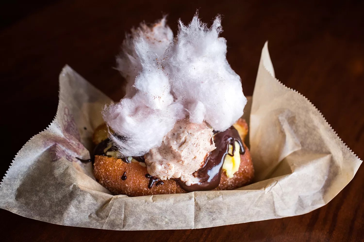 A fanciful churro doughnut from one of the Inventing Room’s previous molecular doughnut pop-ups.
