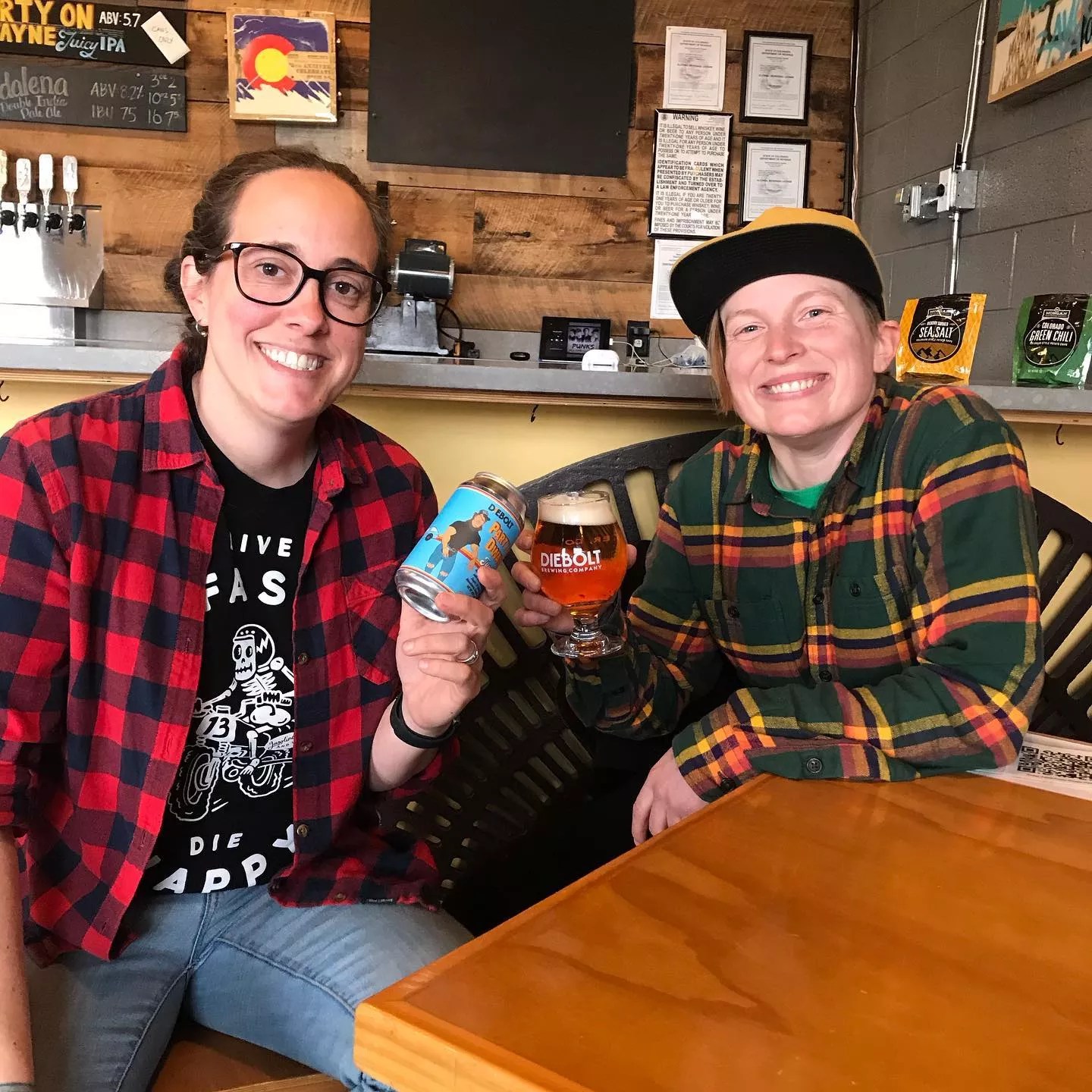 Betsy Lay of Lady Justice Brewing (left) and Kelissa Hieber of Goldspot teamed up to buy a canning machine.