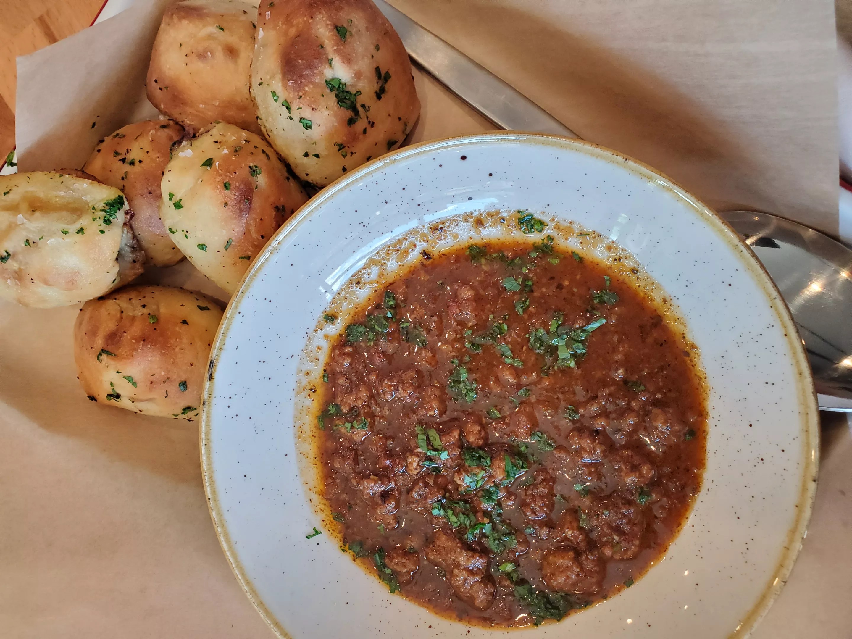 Among the starters are the Coney Knots ($12), a play on traditional garlic knots that doubles as an ode to “a longstanding Coney battle in Detroit, on Lafayette Street,” Youngerman says. The knots are stuffed with slices of Nathan’s hot dogs (which, as someone raised on the brand, I can attest is the only hot dog worth eating) along with a hint of yellow mustard and onions. They come with a bowl of Coney-style red chili for dipping, and could even make a meal if you can ward off any diners trying to share.