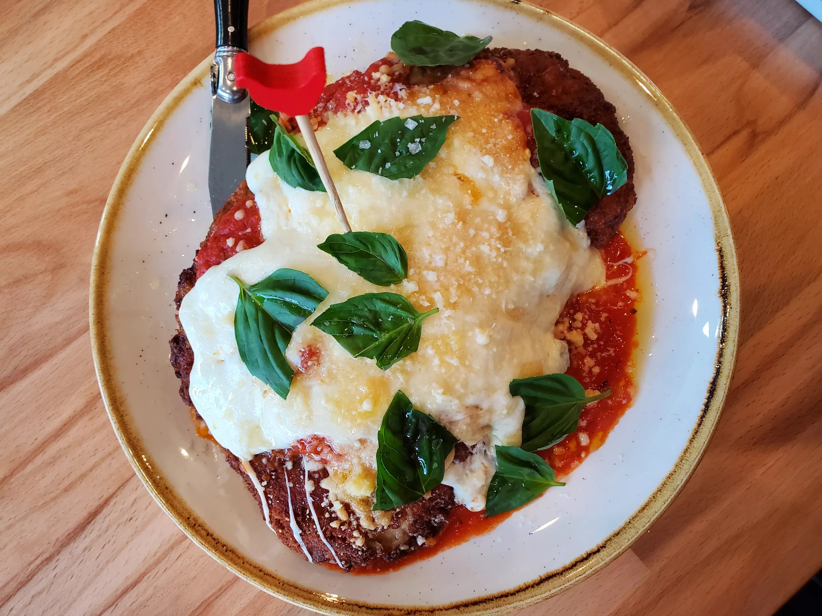 Entrees include Shrimp Scampi ($30), A Very Big Meatball ($21) and an extra-large take on Chicken Parmesan ($34) made from an entire deboned half a chicken. Traditionalists may miss the typical thin and crispy cutlet, but this juicy take on the classic could definitely satisfy a crowd.