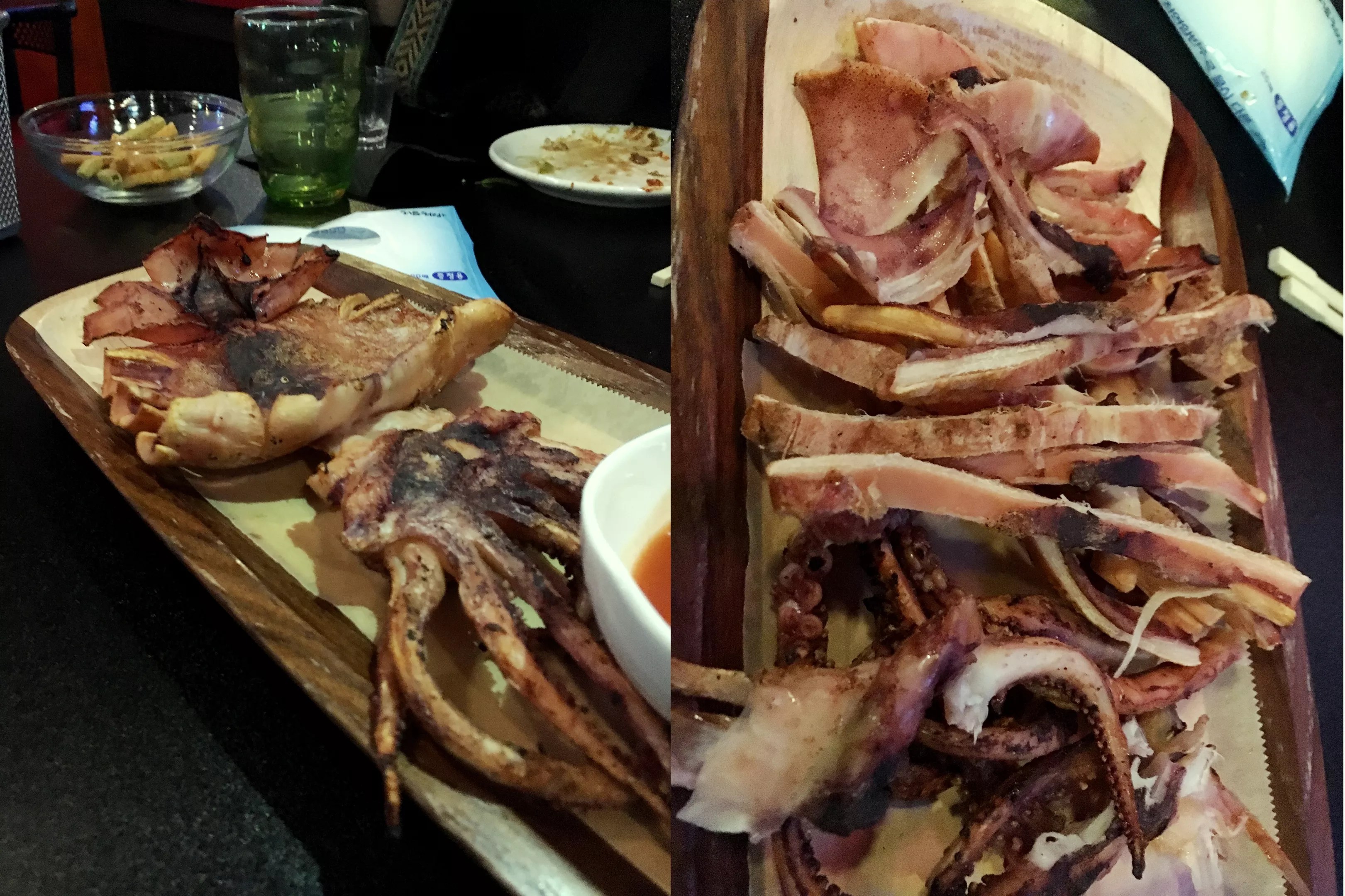 We must have paused a little too long when the server at DMZ Pub set the platter of semi-dry squid on our table. The sight was intimidating: Flat like a deflated football and at least a foot long from tentacle tips to the top of its head (if squid actually...