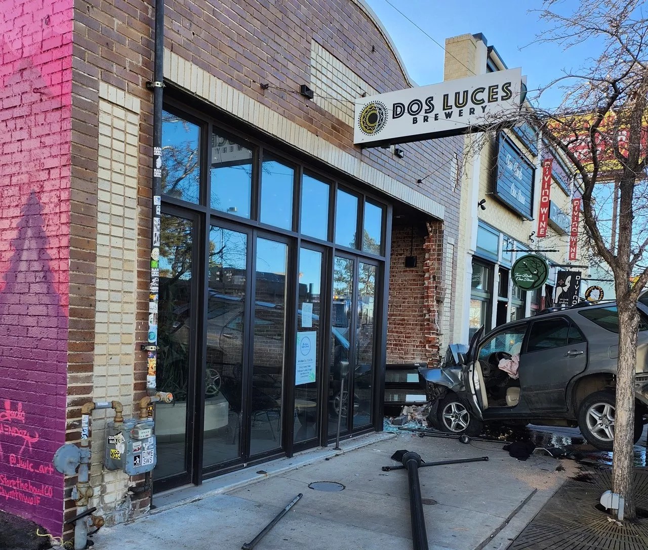 On Tuesday, February 21, at 7:39 a.m., a car went crashing through the front of Dos Luces Brewery at 1236 South Broadway. “How was your day today?” reads an Instagram post showing security camera footage of the incident.