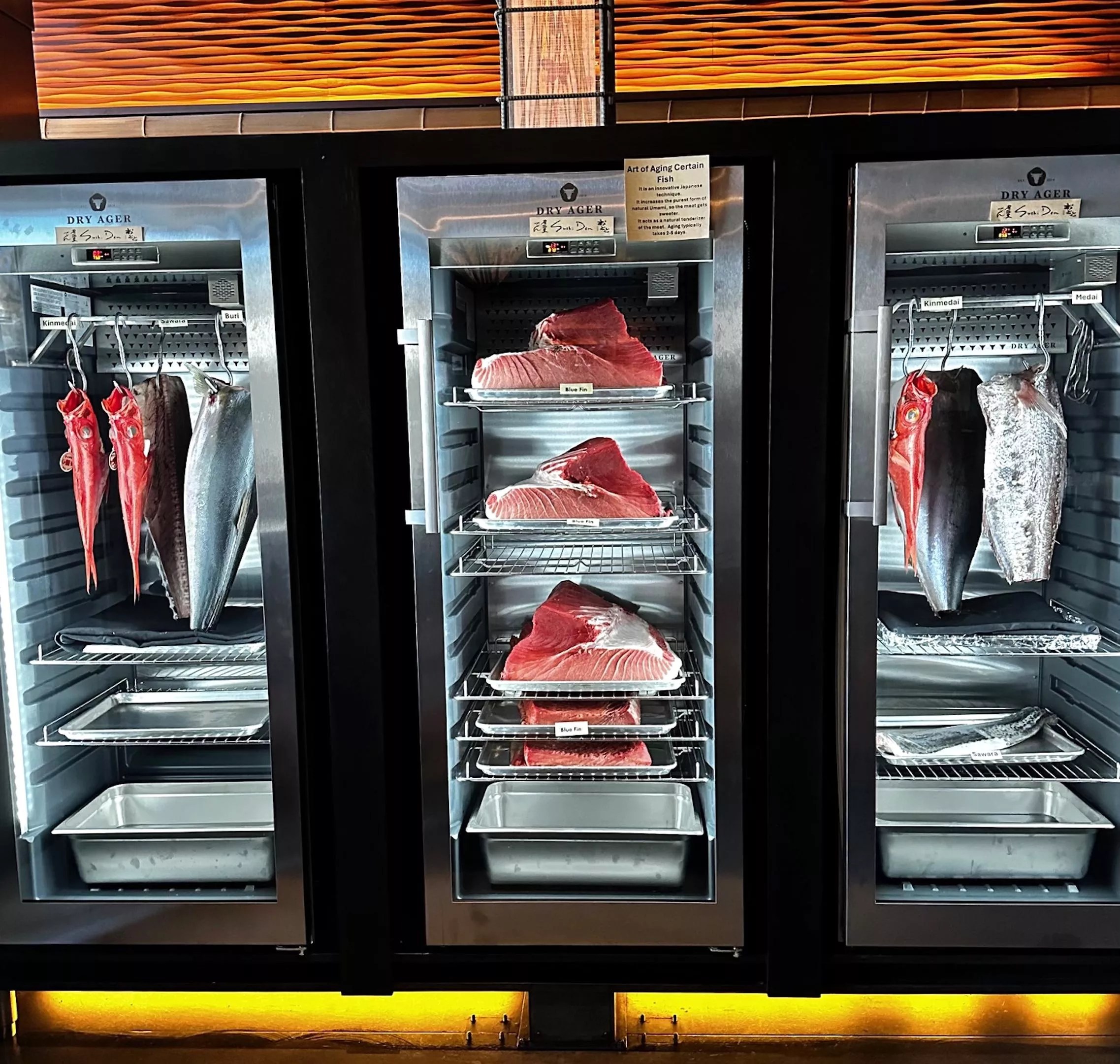 Dry-aged fish served at Sushi Den is kept at 1 degree Centigrade (33.8 degrees Fahrenheit).