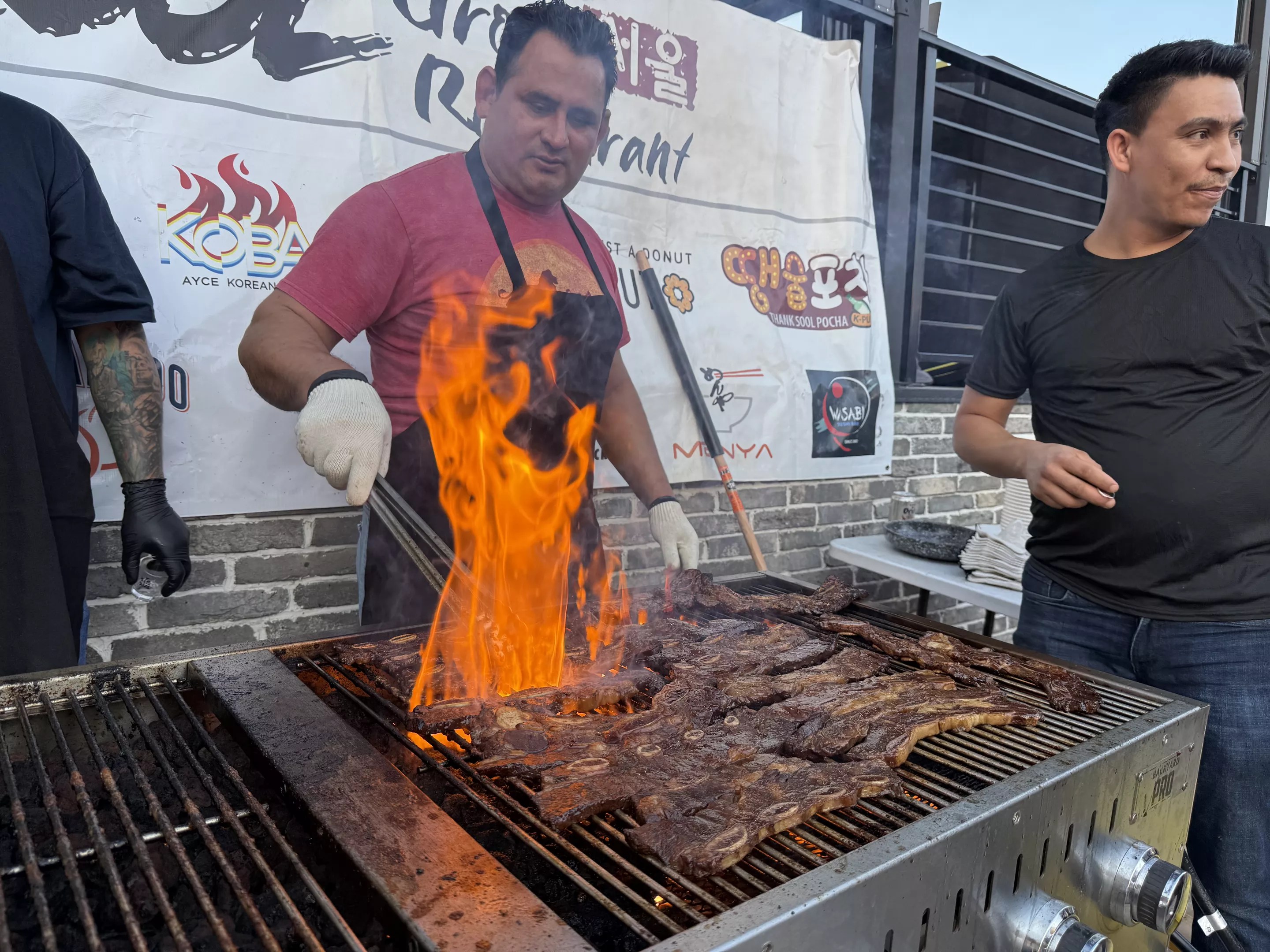 Seoul Hospitality Group brought the fire, grilling just outside their Leezakaya restaurant.