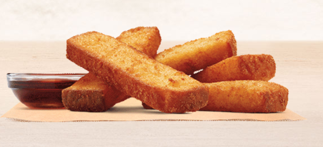Burger King makes a good breakfast option with sweet French toast sticks made without dairy and egg.