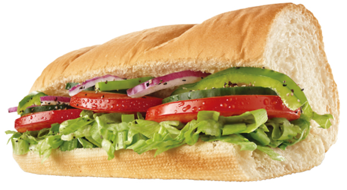 Many of the breads at Subway are made without milk and eggs, including the nine-grain wheat, hearty Italian, Italian white, honey oat, roasted garlic and sourdough, as are the spinach and tomato-basil wraps. Some locations carry vegetarian patties, but they contains eggs. Load up on vegetables such as cucumber, lettuce, tomatoes, spinach, banana peppers, jalapeños, pickles, onions, olives and green pepper. Many of the sauces are vegan – buffalo sauce, sweet onion, guacamole, deli brown mustard, yellow mustard, red wine vinegar, herb garlic oil and vinaigrette. The black-bean soup and many chip selections are also vegan.
