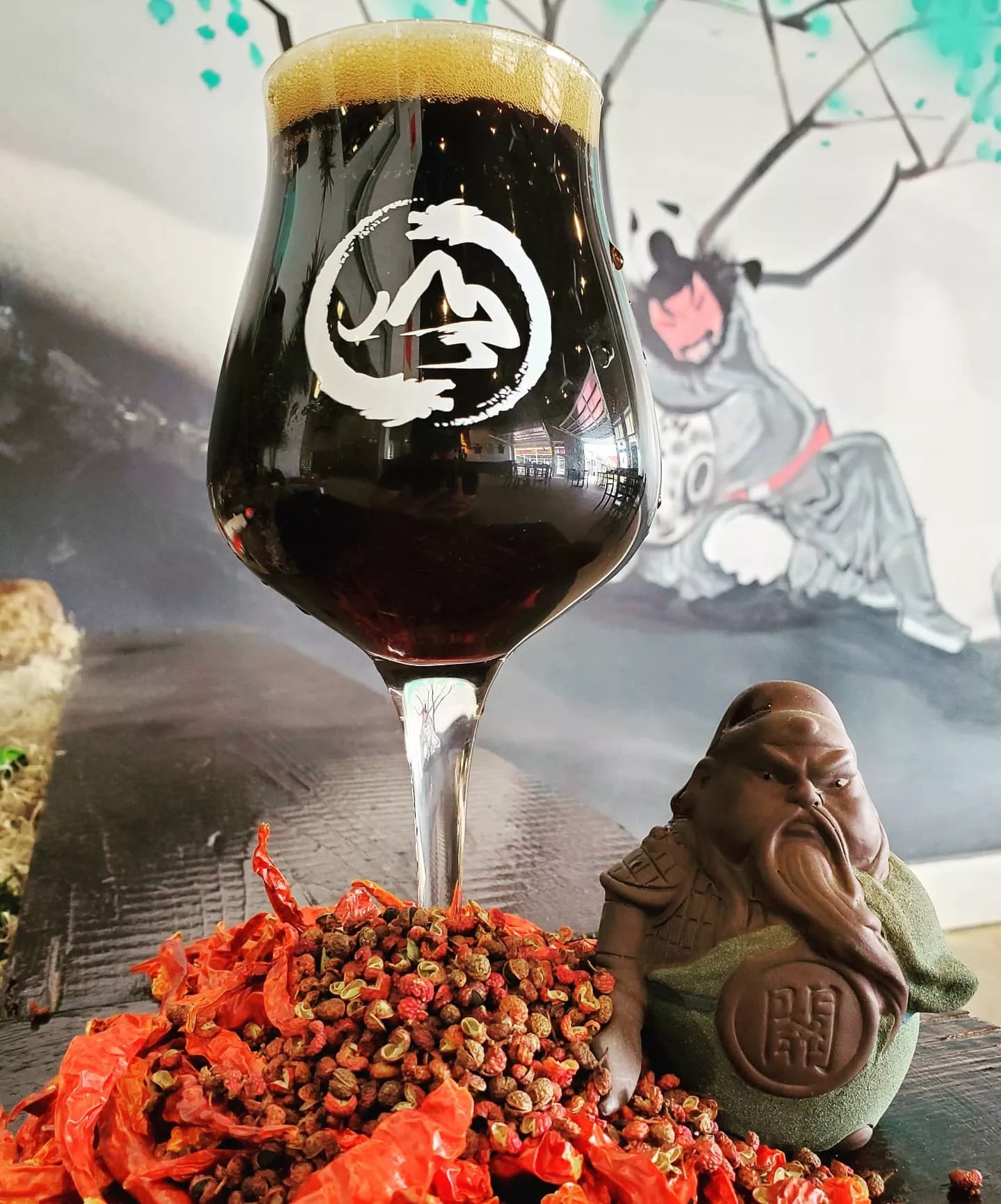As the temperature starts to drop, Jade Mountain Brewery owner Sean Guerrero likes to reach for his favorite cold-weather beer, Guan Yu – and you should, too. The brewery’s house stout strikes a balance between roasty malts, Sichuan chiles, Sichuan peppercorns, chocolate and lactose for a creamier mouthfeel. “Pair it with our Sichuan peanuts and you have the perfect fall treat,” the brewery says.