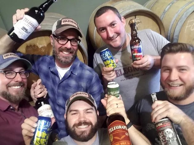 The Telegraph Brewing crew celebrates the purchase.