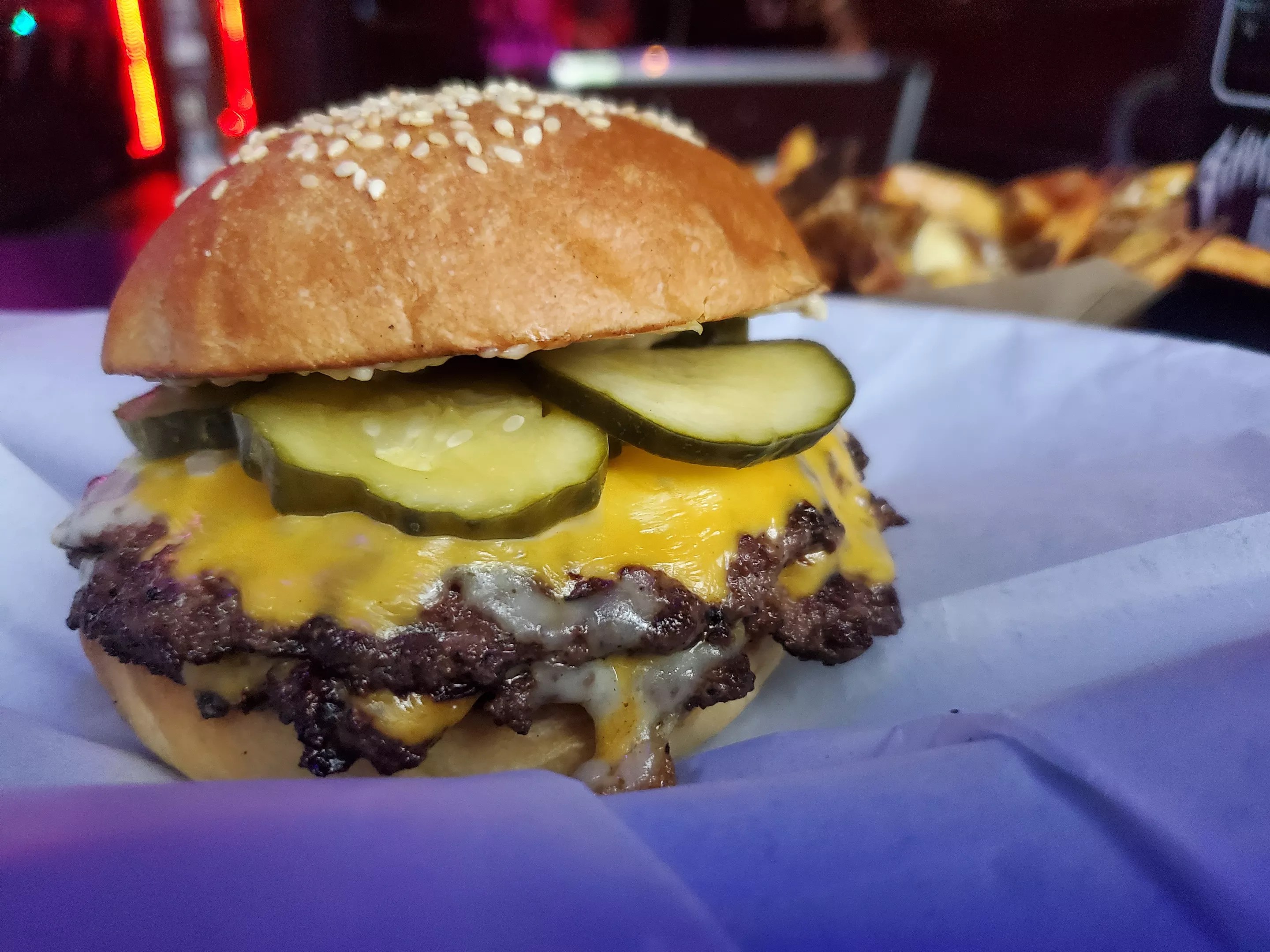 While I’ve been to the Crypt quite a few times for late-night drinks since it opened in Uptown in January 2022, I hadn’t tried its burger until I recently met up with a group of friends around dinnertime. While the menu is mostly vegan, there are a few exceptions. One is the double burger, an excellent example of the type of classic smash burger that’s popular these days; it includes two quarter-pound beef patties, Swiss and American cheese, housemade dill pickles, onions and caramelized leek mayo on a brioche bun. It’s also available as a single.
