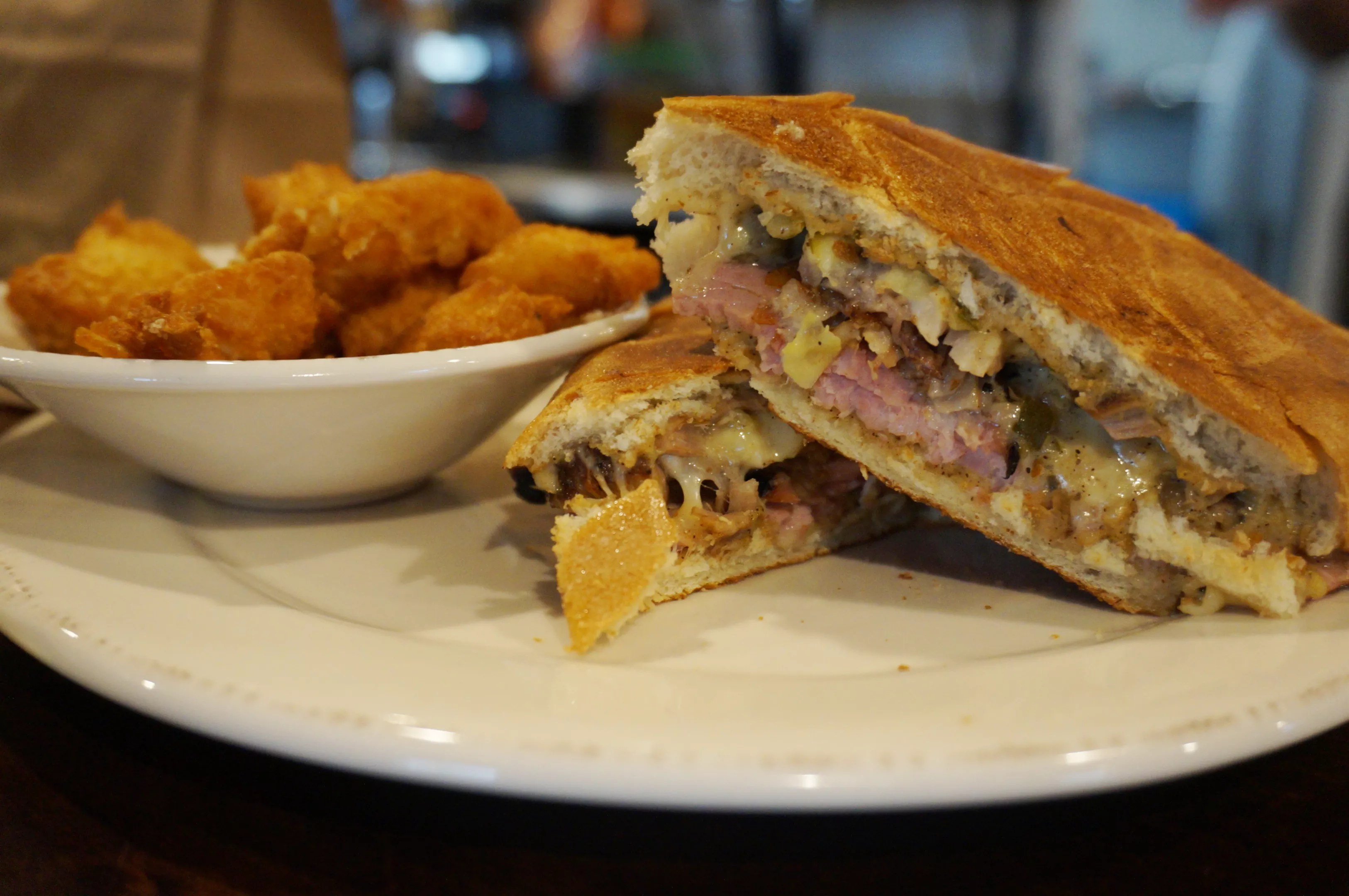 A Cubano and housemade tater tots from the lunch menu.