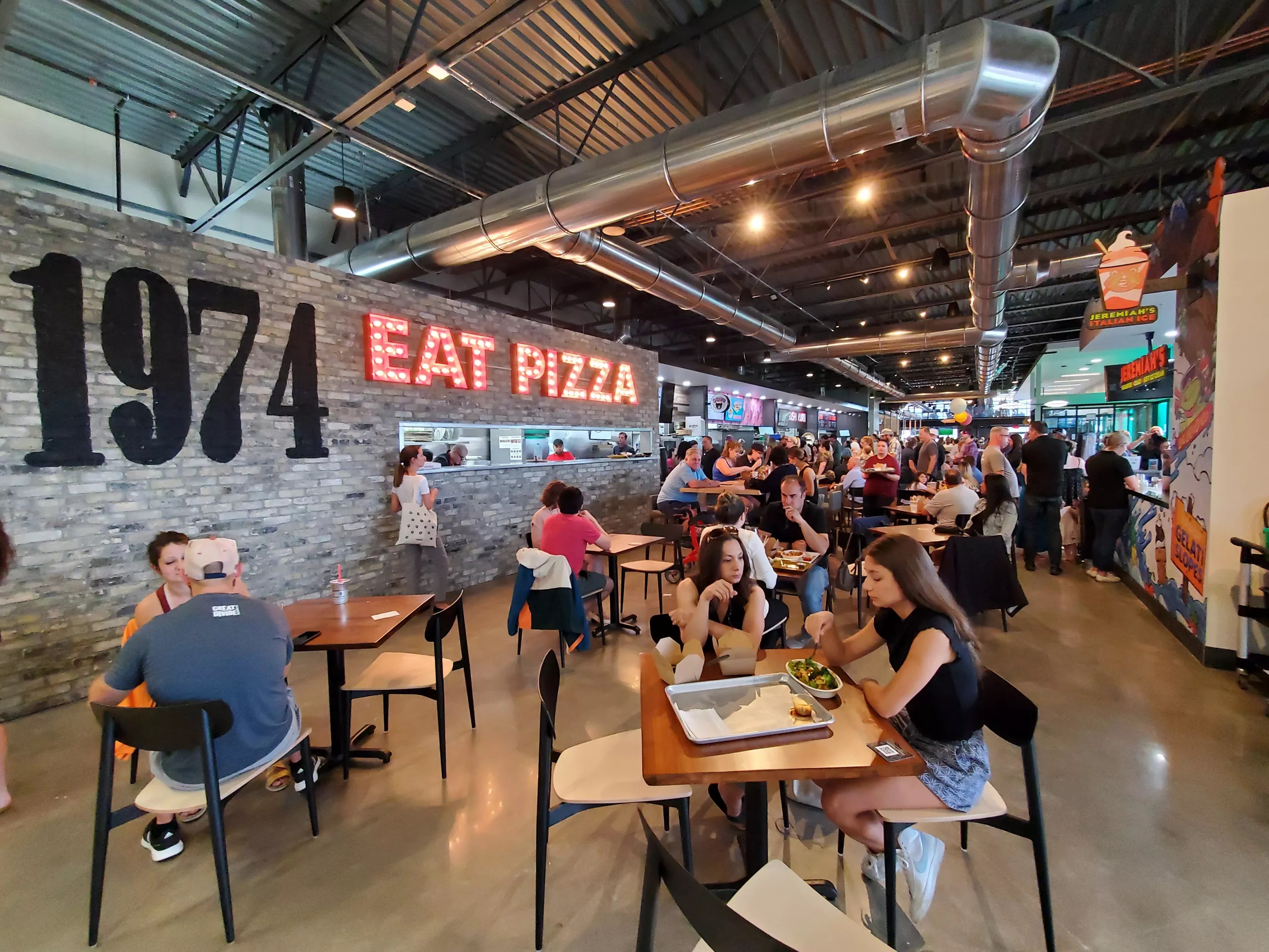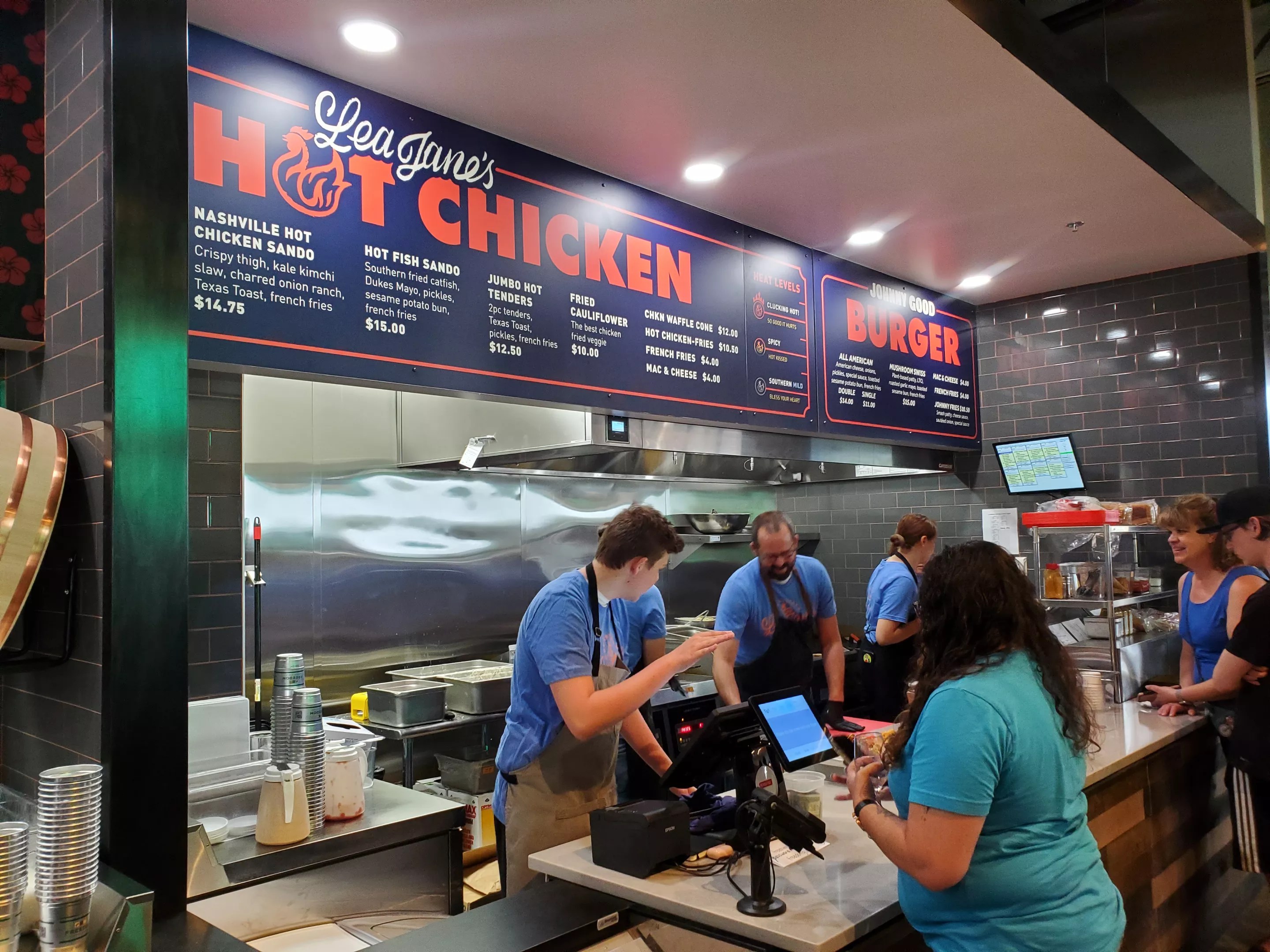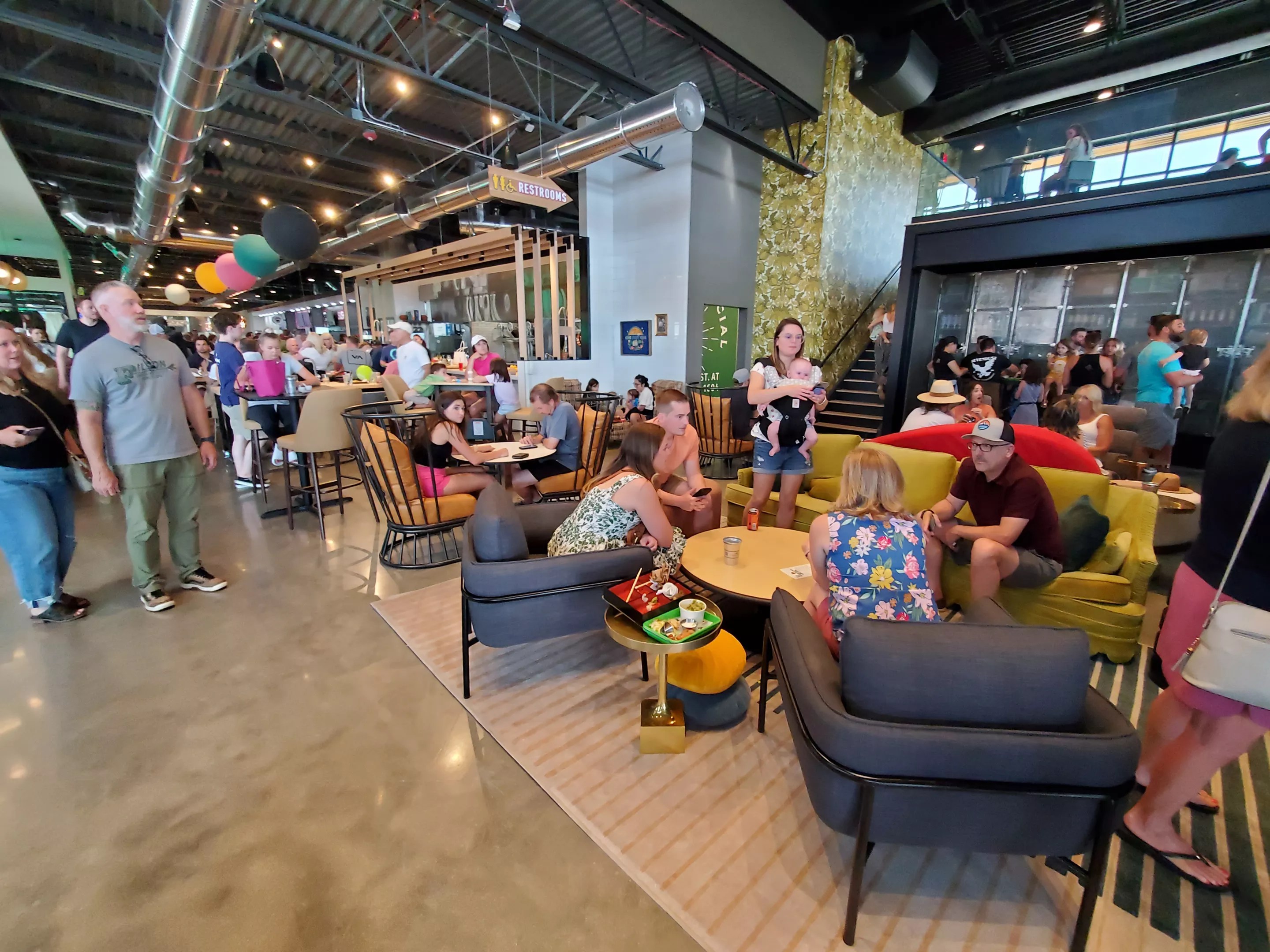 Among the food options are Osito, the fast-casual iteration of Culinary Creative’s Mr. Oso; Lea Jane’s, which is dishing up huge fried chicken sandwiches; Balance Pan-Asian Grille, where you order via tablet for a quick, healthy option; Chicago deep-dish chain Giordano’s; and Jeremiah’s Italian ice – a big hit with the many children on hand for opening night.