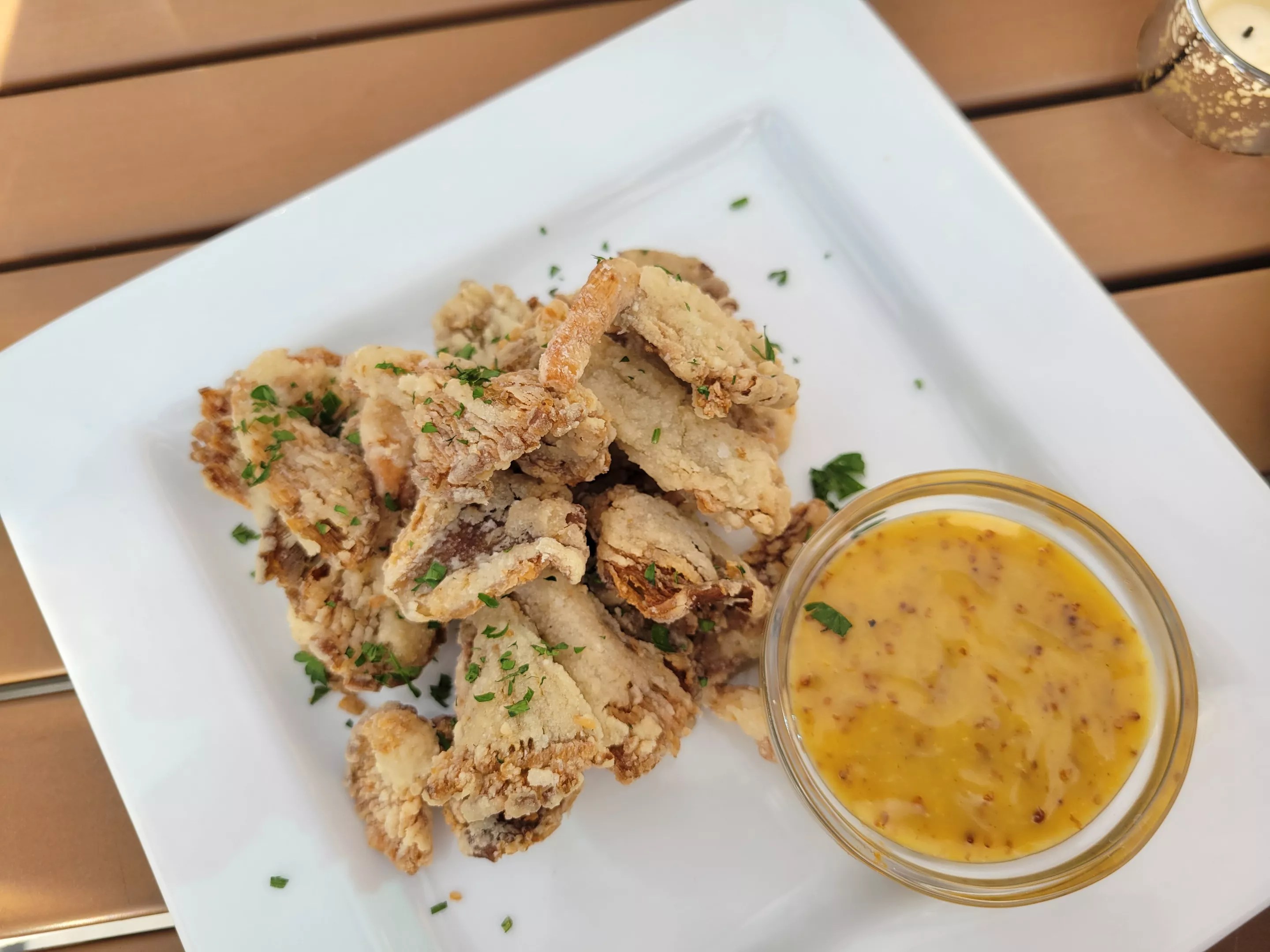 Fried oysters fit into the fried and finger food theme.