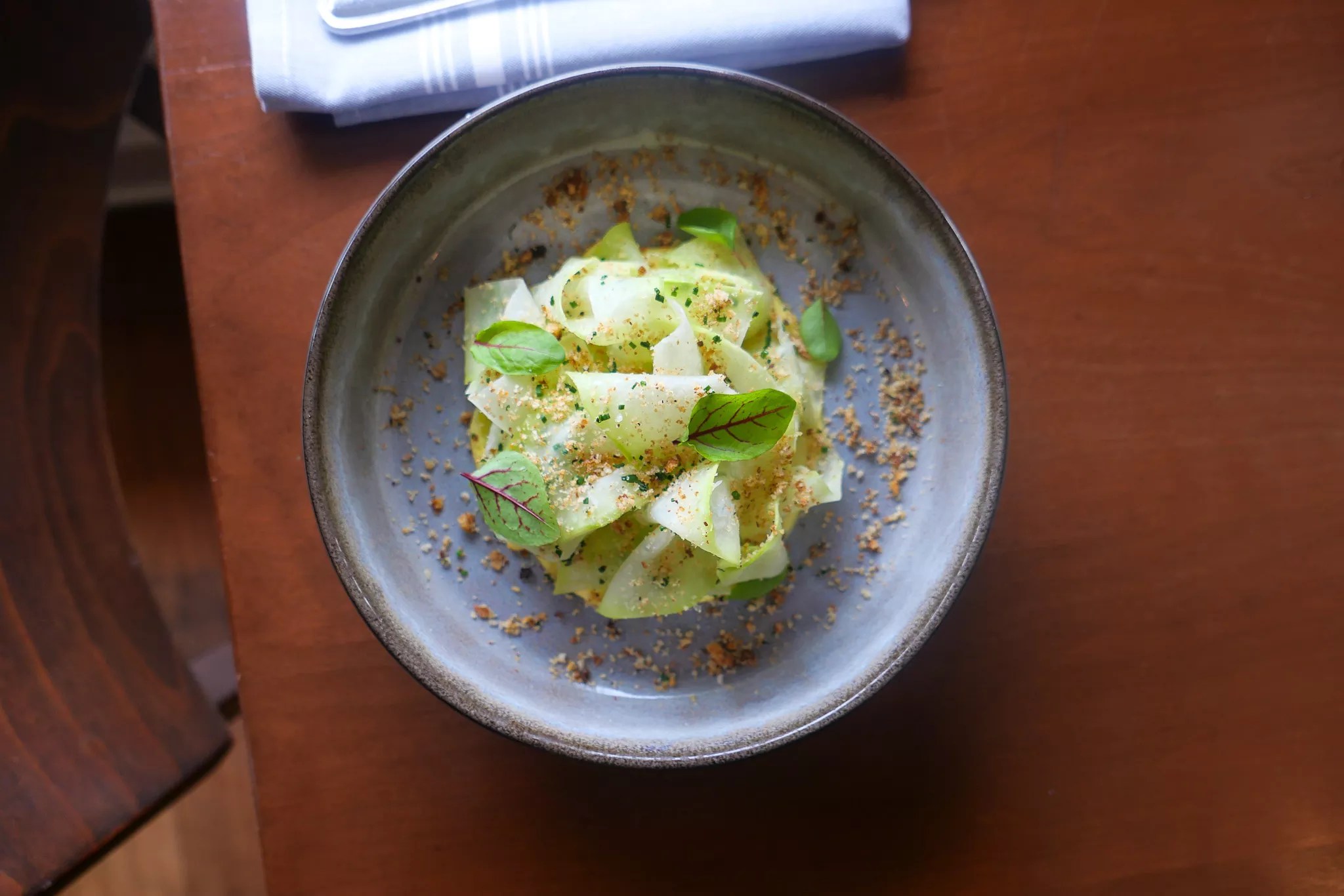 A fun take on the classic Caesar salad that utilizes kohlrabi.