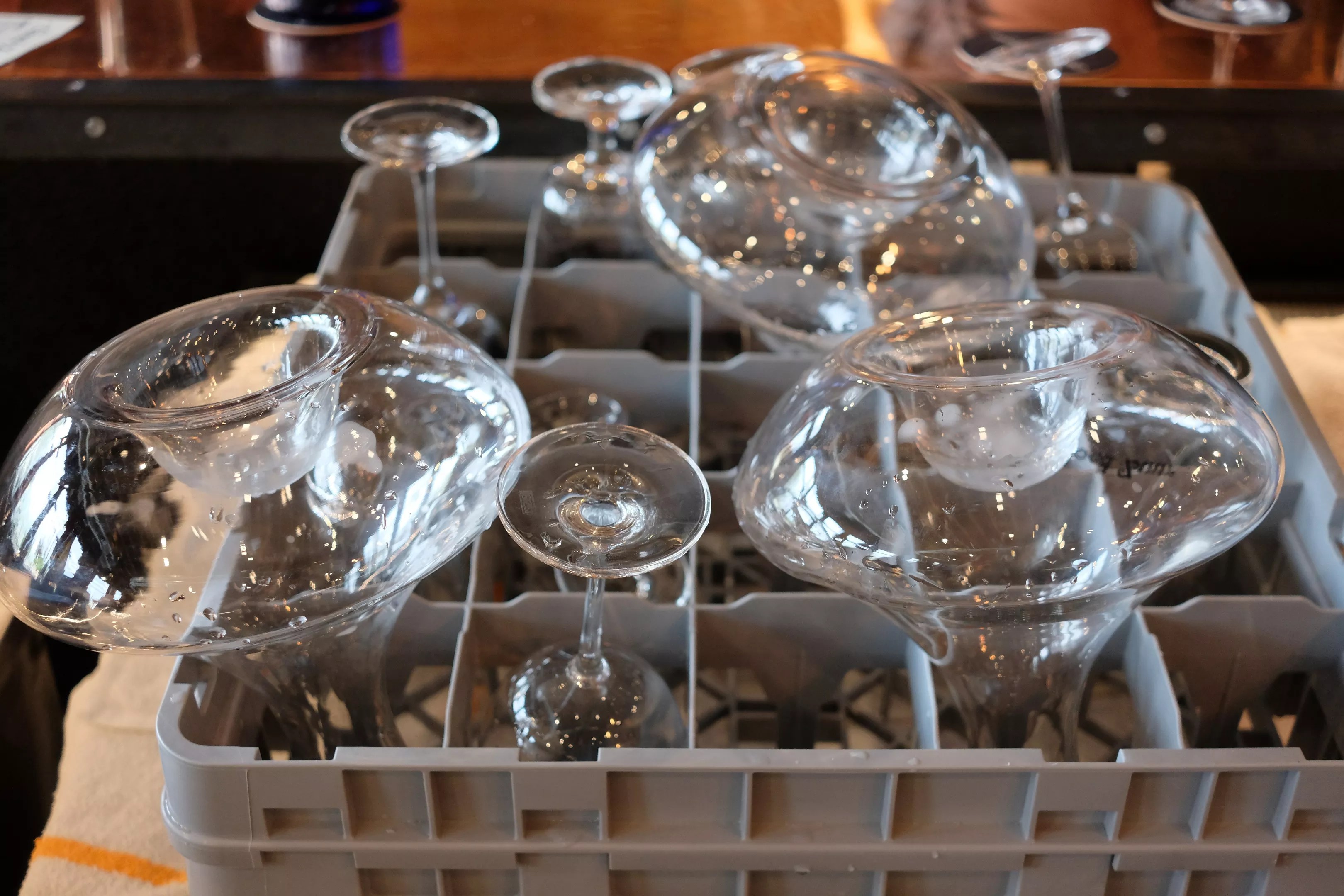 The beers will all be served in three stylish logo glasses specific to different kinds of beers: barrel-aged sours, for instance, will get large tulip glasses, while goses will be poured into taller, thinner vessels. All of the glasses are sixteen ounces, but the pours will be closer to ten so that people can enjoy the nose and aroma of each one. Most of the beers will also be available in 25-ounce decanters, which will be used for serving and pouring.