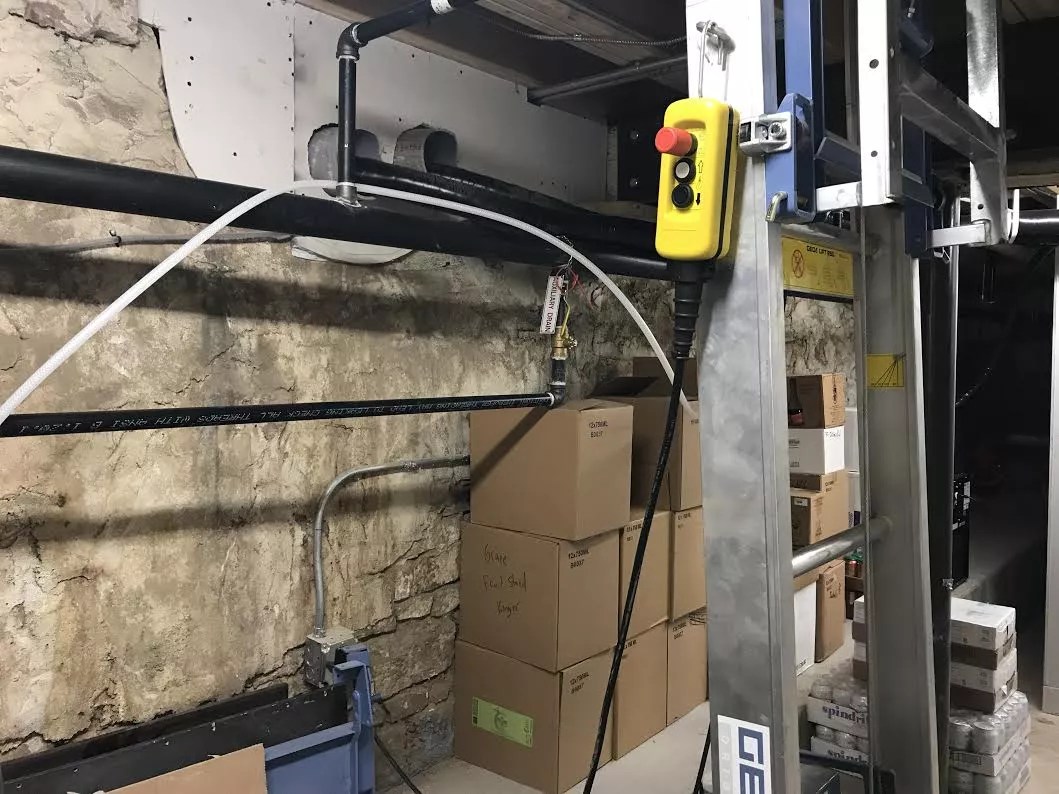The bottled beers and kegs will be stored in a large stone- and brick-lined 1,200-square-foot cellar that includes a modern lift to the main floor. The basement, which stays at a cool 49 degrees even on hot summer days, was a real selling point for Fayman, who is used to seeing his European counterparts storing beer that way.