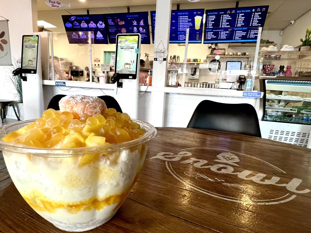 But that’s not all! Snowl also serves a variety of croffles (waffles with different toppings), smoothies, milk teas, slushies, frappes, fruit-infused mint teas and fruit iced tea. Oh, and boba, of course.
