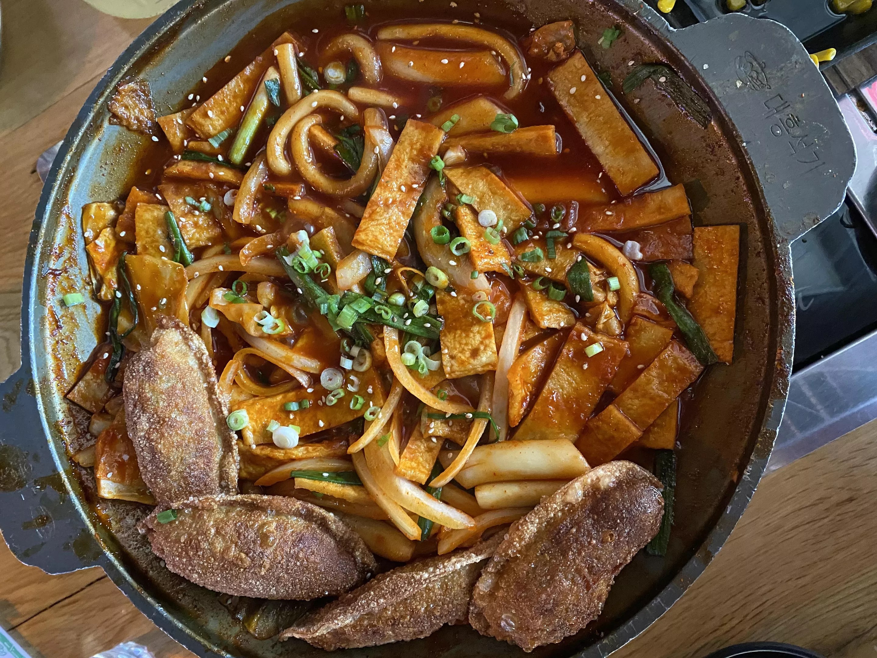 Ttokbokki with fried dumplings at Thank Sool Pocha.