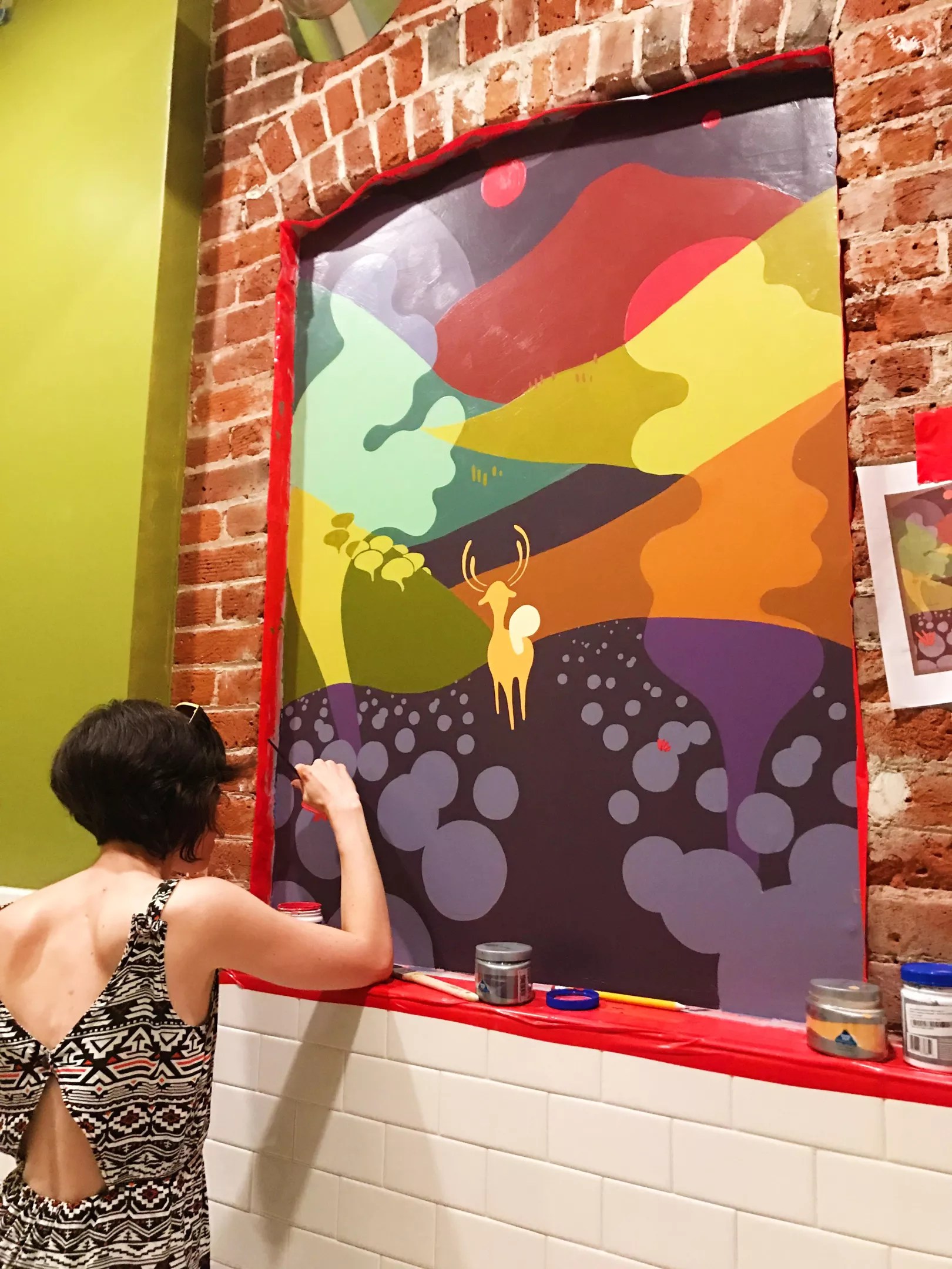 Artist Erika Deoudes works on a panel for Joe Maxx.