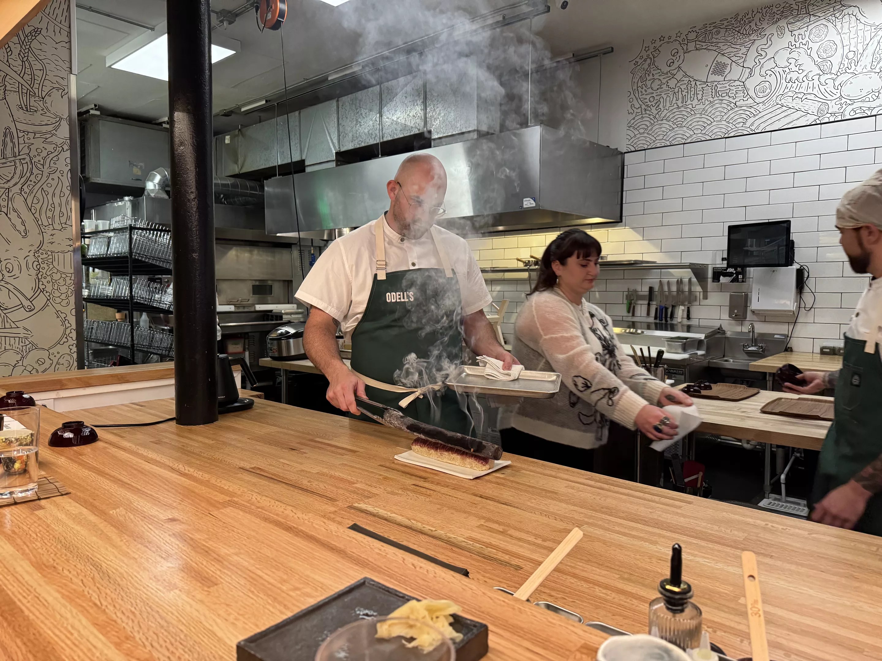 Because there are only two seatings every night – at 5:30 and 8 p.m.-the group progresses through the tasting menu together, leading to nice shared moments with strangers. When it was time for the last nigiri, an indulgent wagyu beef with foie gras and caviar, Odell took out a burning branch to sear the top of the wagyu. Everyone whipped out their phones and collectively oohed and aahed.