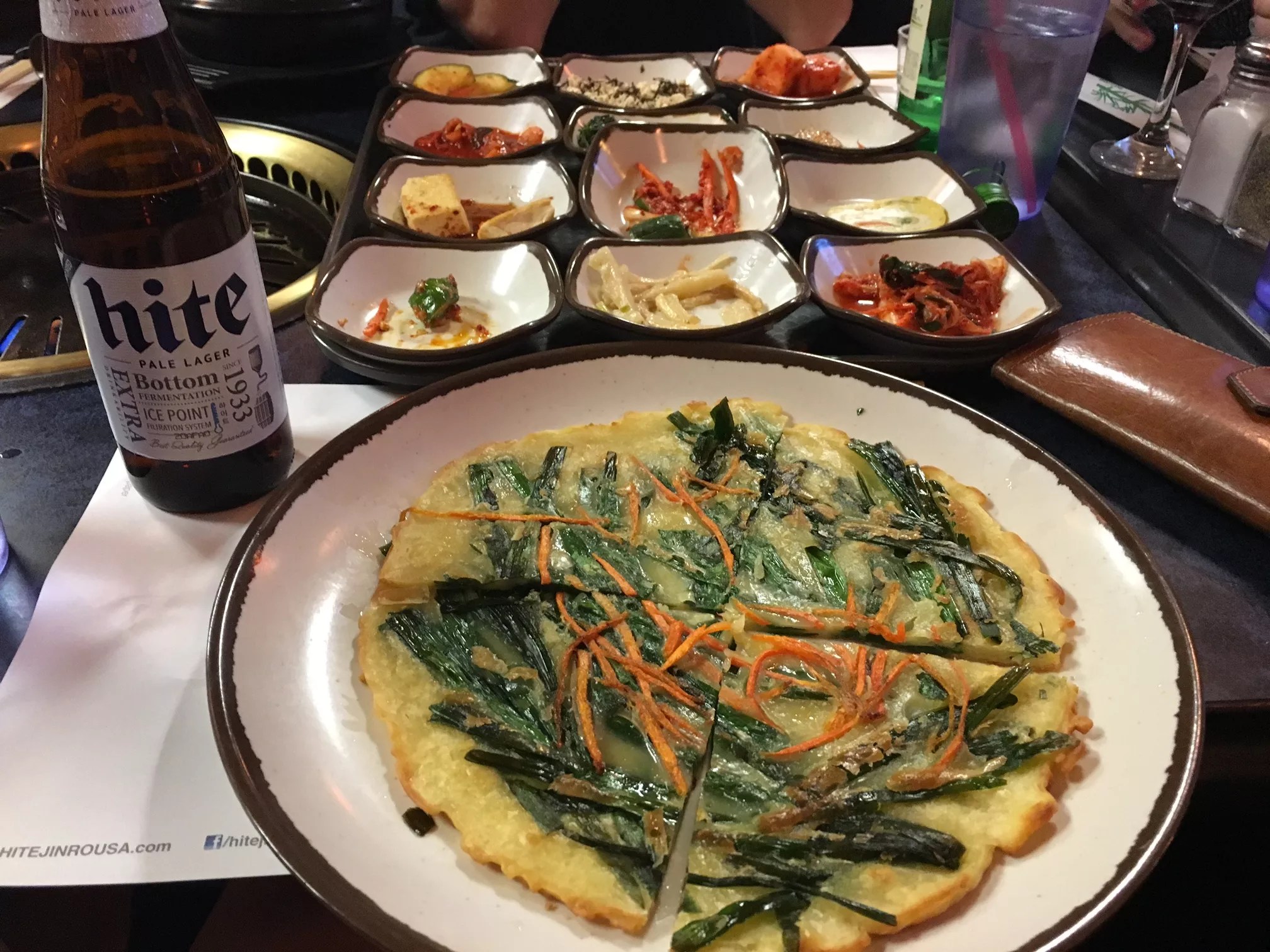Start your meal with a veggie pancake at Shin Myung Gwan.