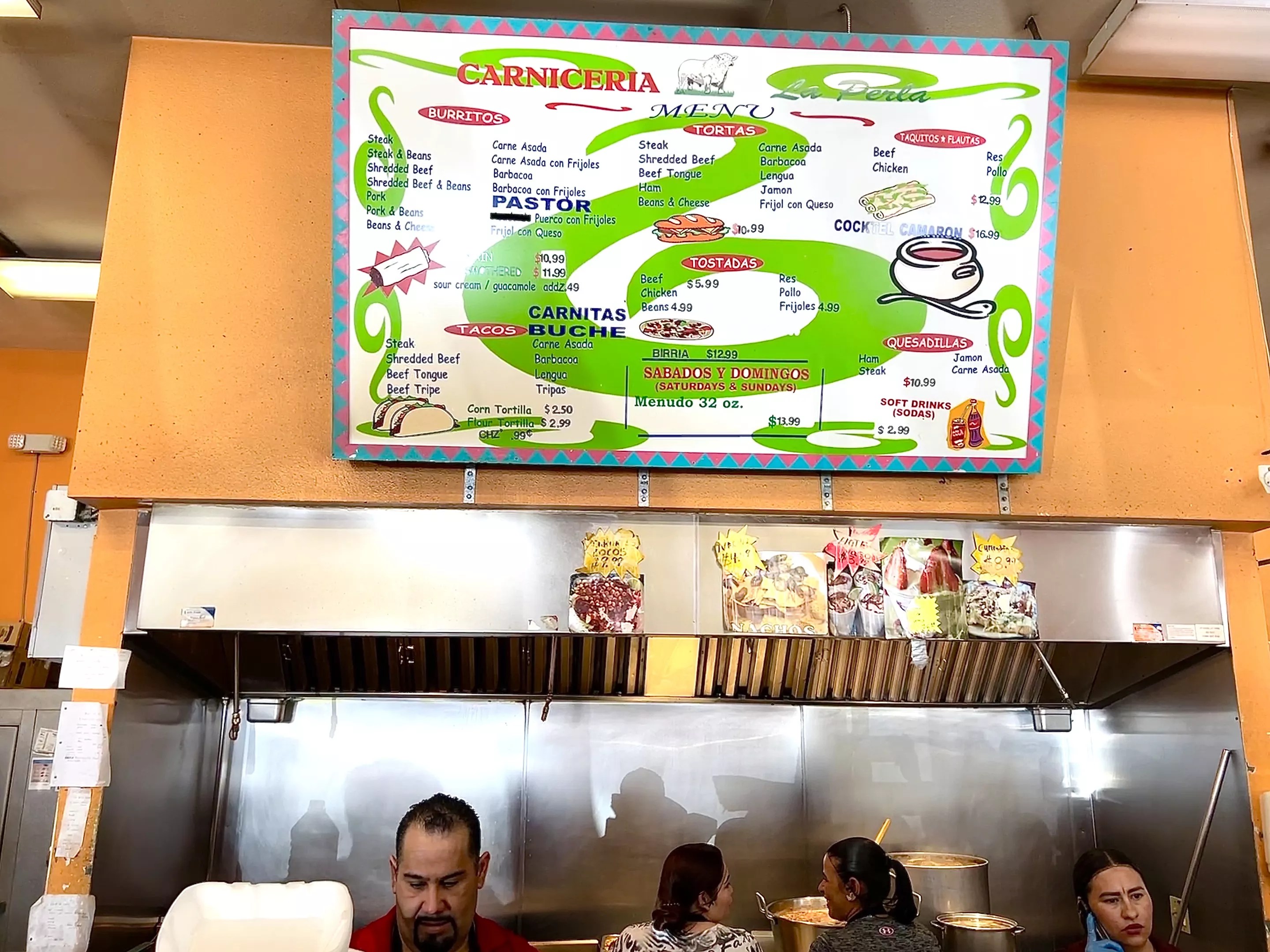 Rodriguez peers out from behind the meat case, eyeing the growing line of lunch customers; he oversees every aspect of the kitchen operations. Part butcher, part cook, part kitchen manager, he does it all. The staff at La Perla take tremendous pride in making their products fresh from scratch. The “red sauce,” a kitchen staple that seasons everything from carnitas to burritos, is actually a recipe from Rodriguez’s mother, he says, smiling proudly.
