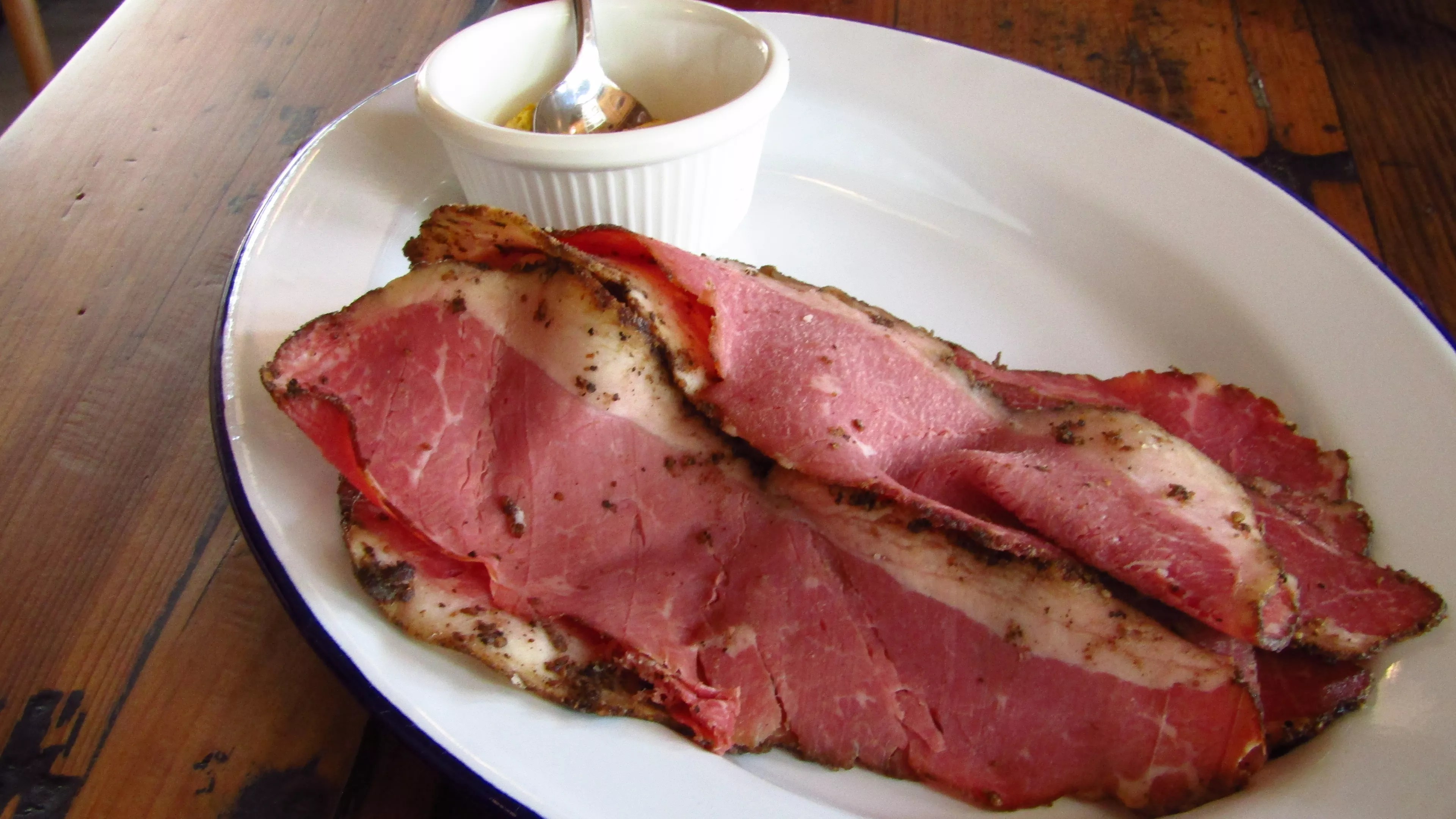 Chef Luke Hendricks makes pastrami from scratch for Leven’s sandwiches.