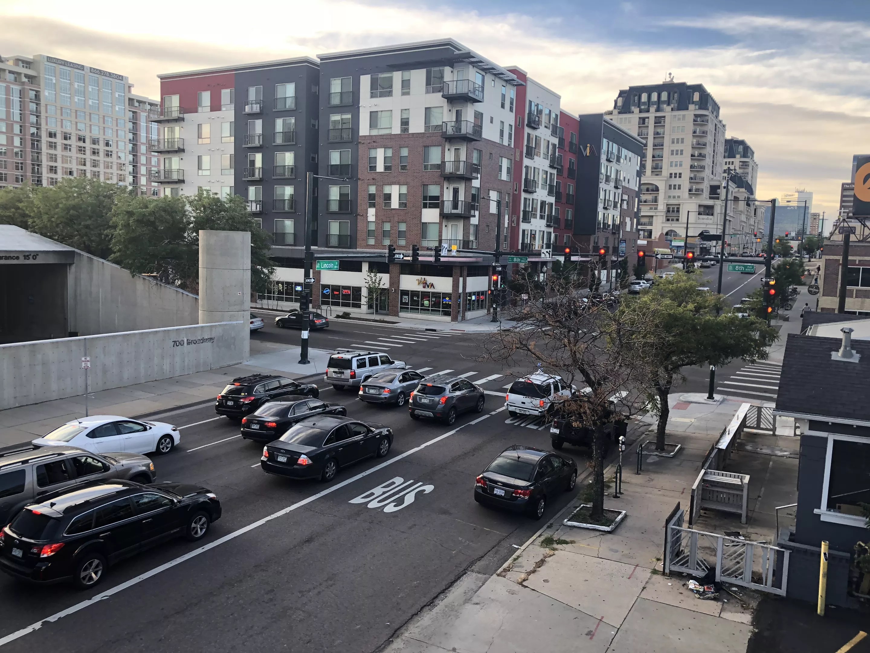 The view of Lincoln Street from the rooftop patio looks pretty nice on a Sunday.