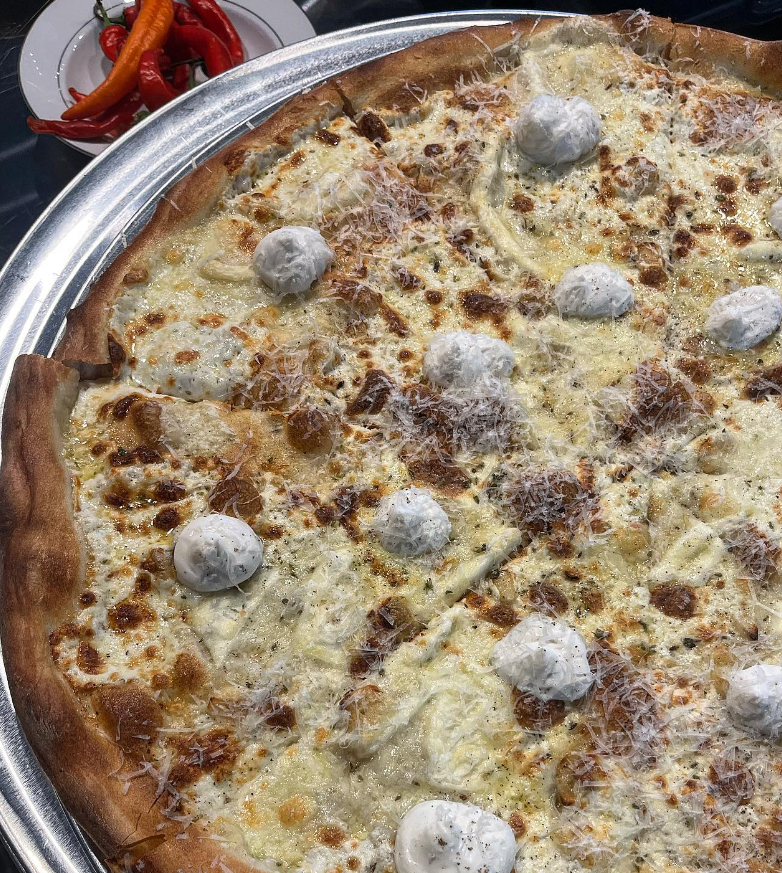 Toppings: Buono whole milk mozzarella, Pecorino Sardo Maturo, San Marzano tomatoes, Sicilian olive oil, Sicilian oregano