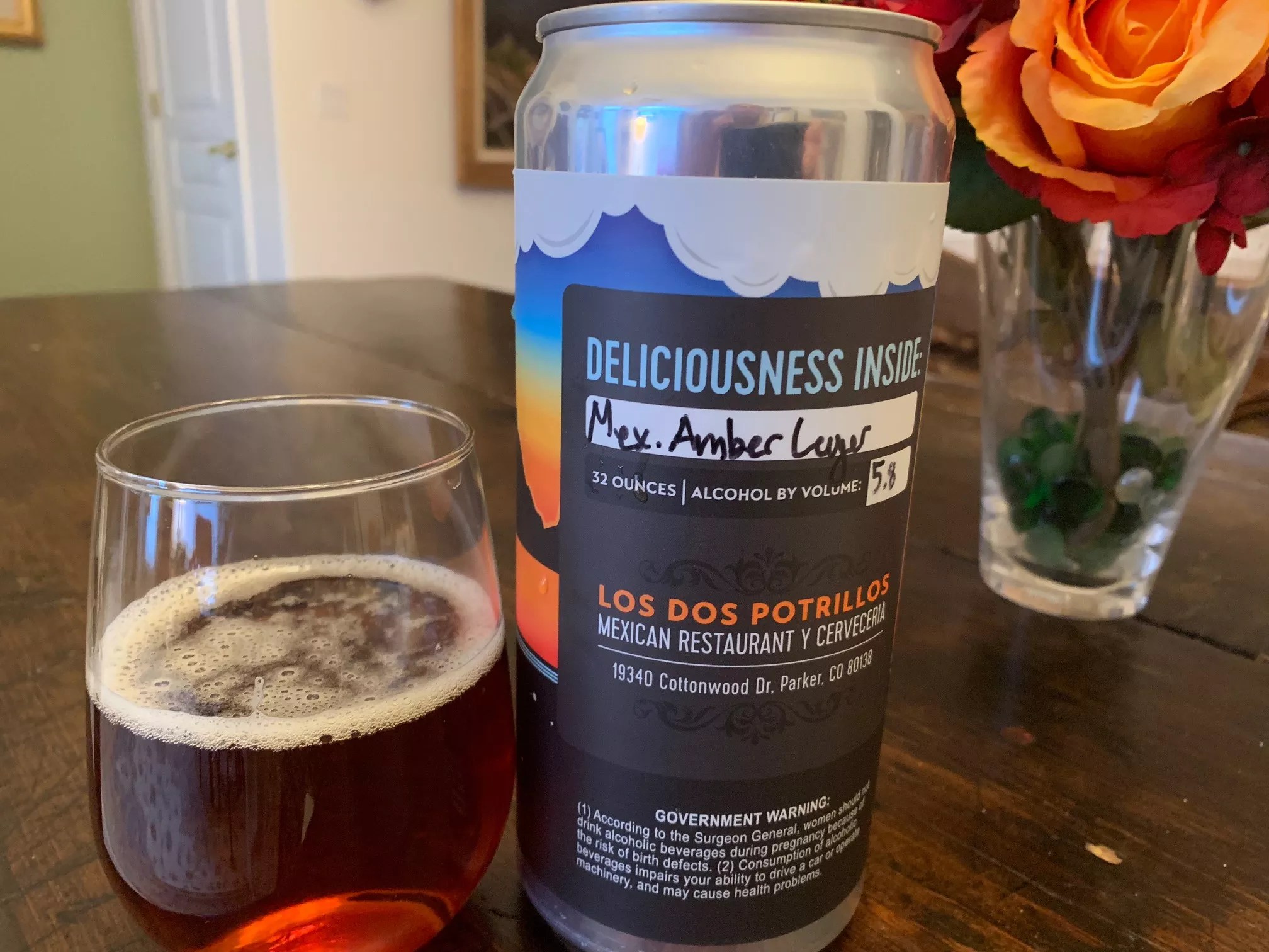 You can order online, over the phone or through a curbside window. We called in our order, which was ready in twenty minutes at the original location at 8251 South Holly Street and delivered to our car window: a steak quesadilla ($13.95, but that includes a side of guacamole as well as chips and salsa), a pint of green chile and a 32-ounce can of the Mexican Amber Lager, which lived up to the billing of “deliciousness inside.”