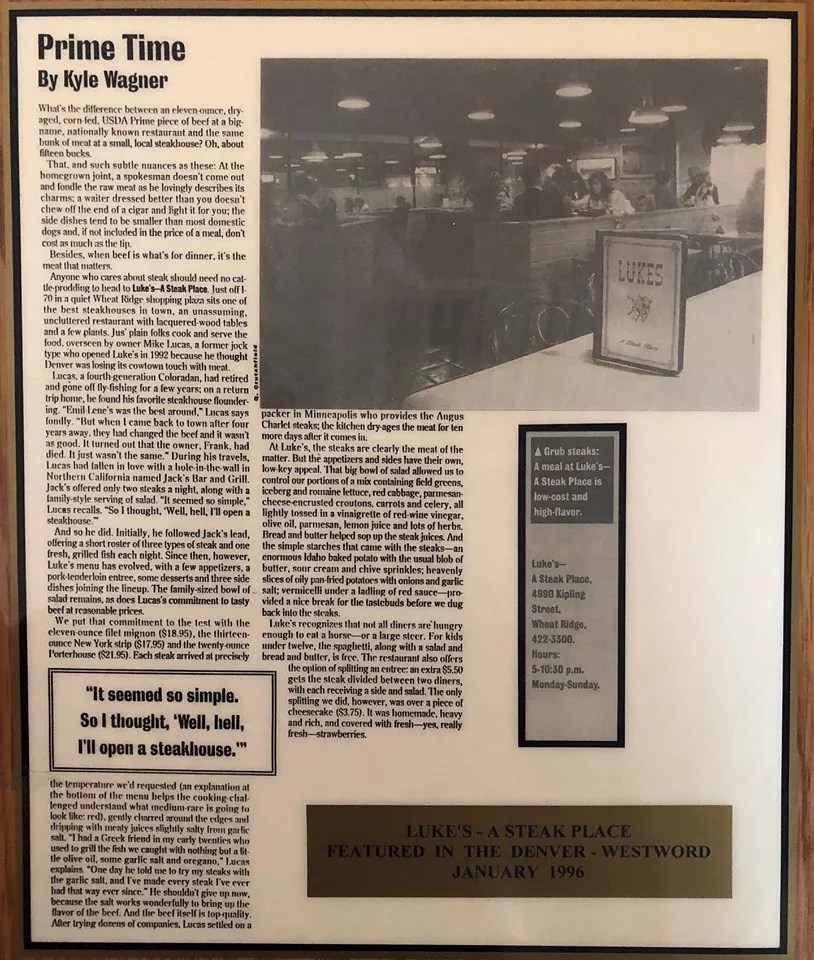 Luke’s has been welcoming steak lovers in Wheat Ridge since 1992.