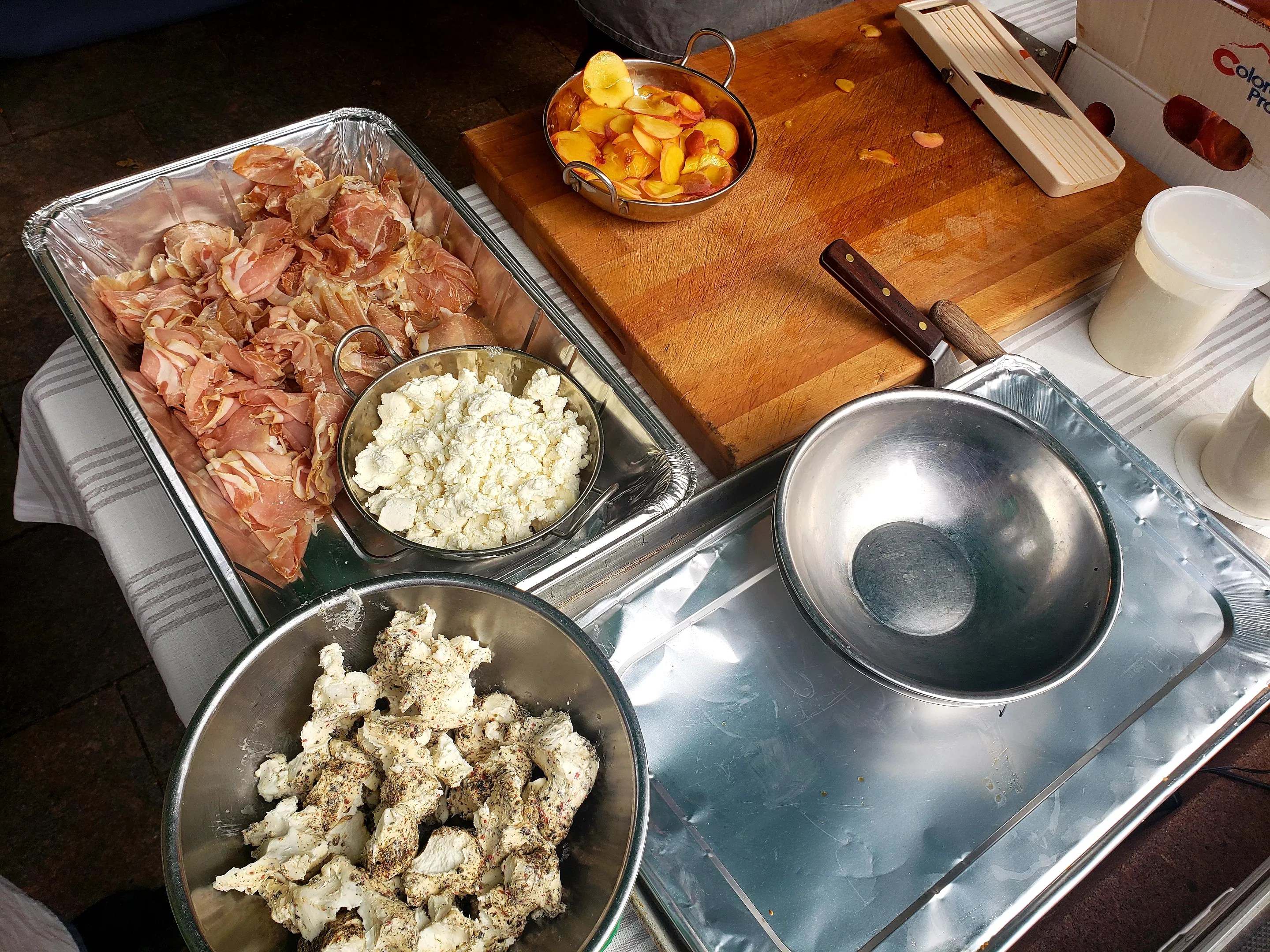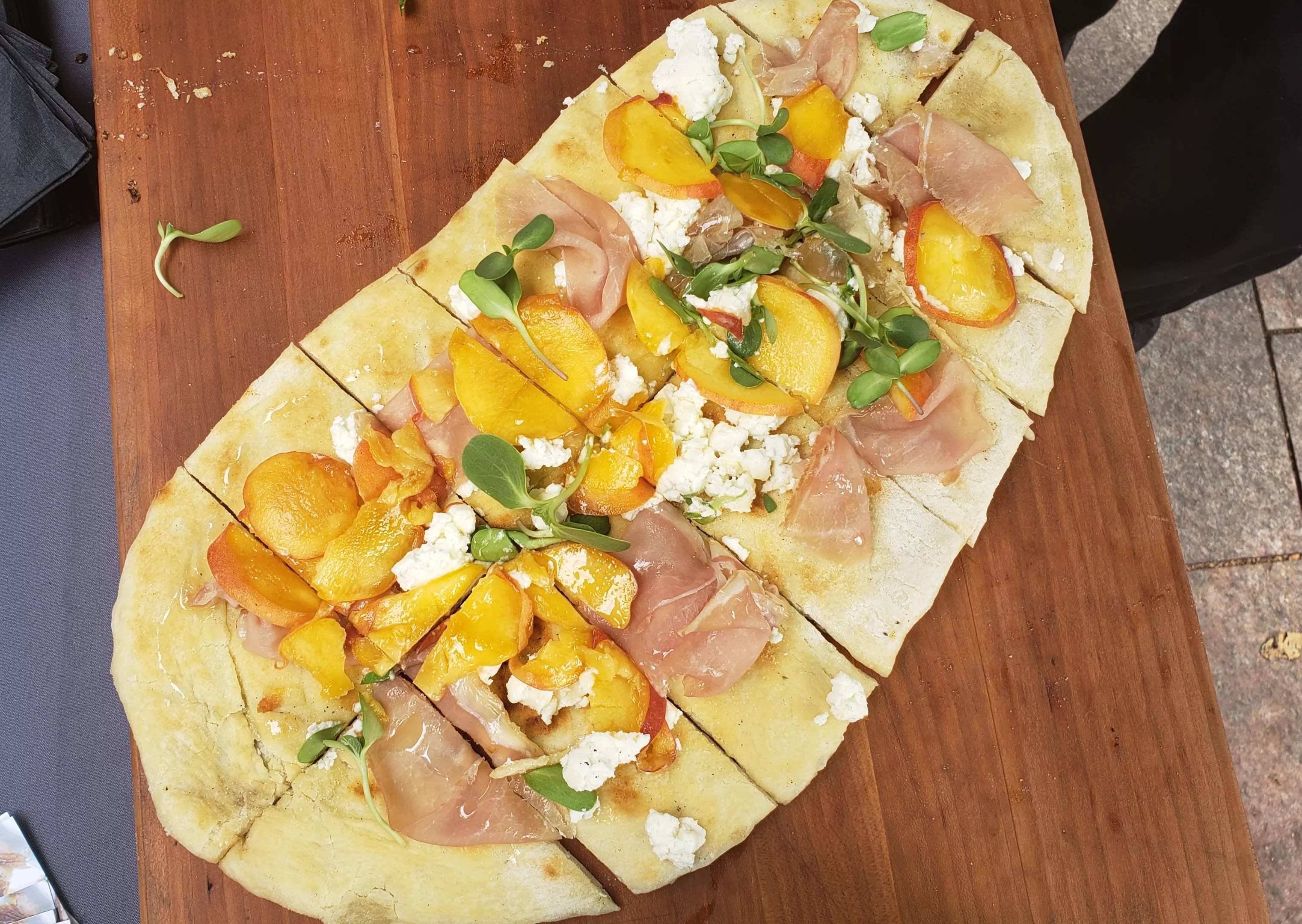 The featured dish was a flatbread with Vesta’s lonza, peaches, goat cheese, honey and sunflower shoots.