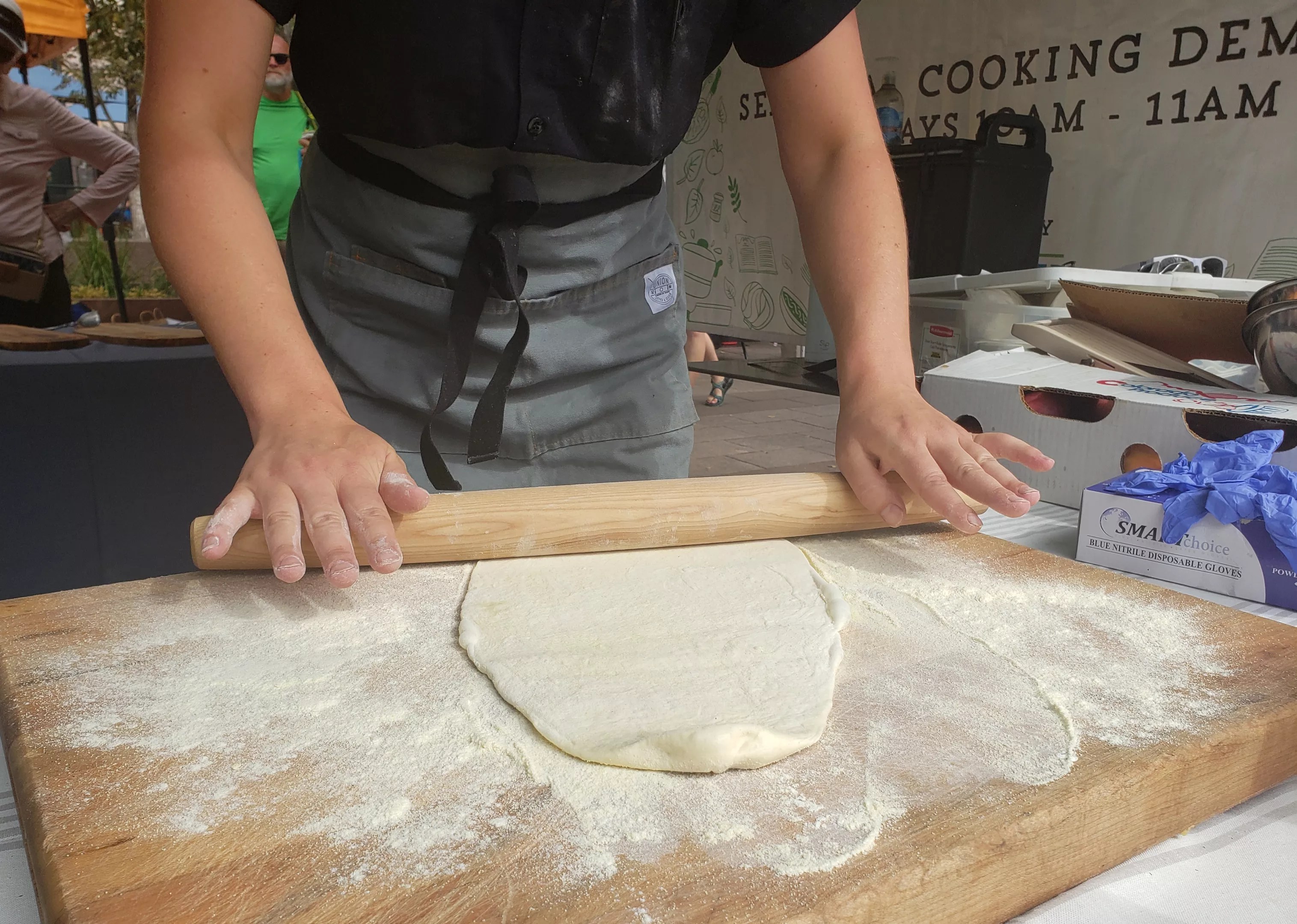 Donovan rolls out the dough for flatbread.